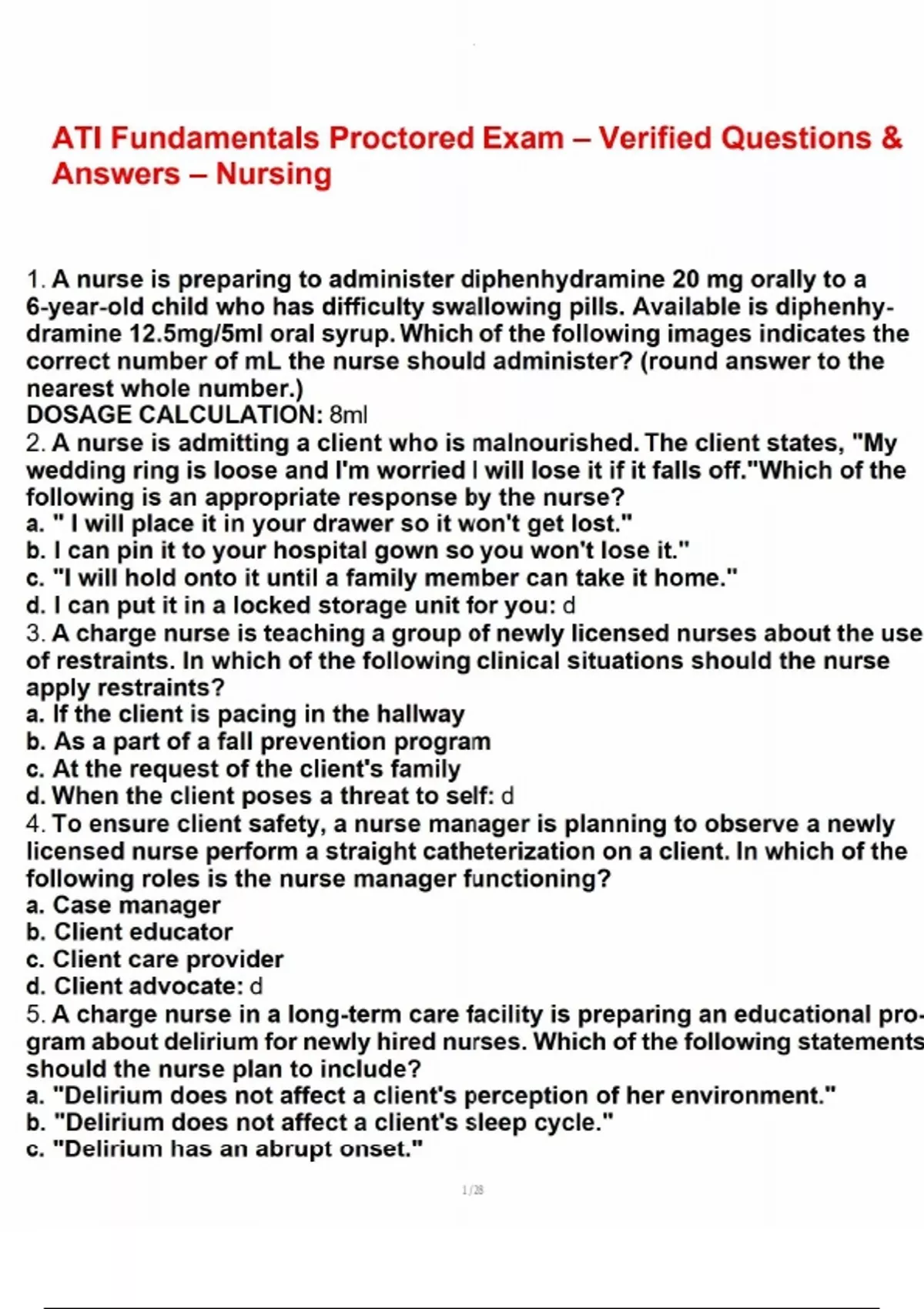 ATI Fundamentals Proctored Exam – Verified Questions & Answers – N ATI Fundamentals Proctored Exam – Verified Questions & Answers – N ATI Fundamentals Proctored Exam – Verified Questions & Answers – N