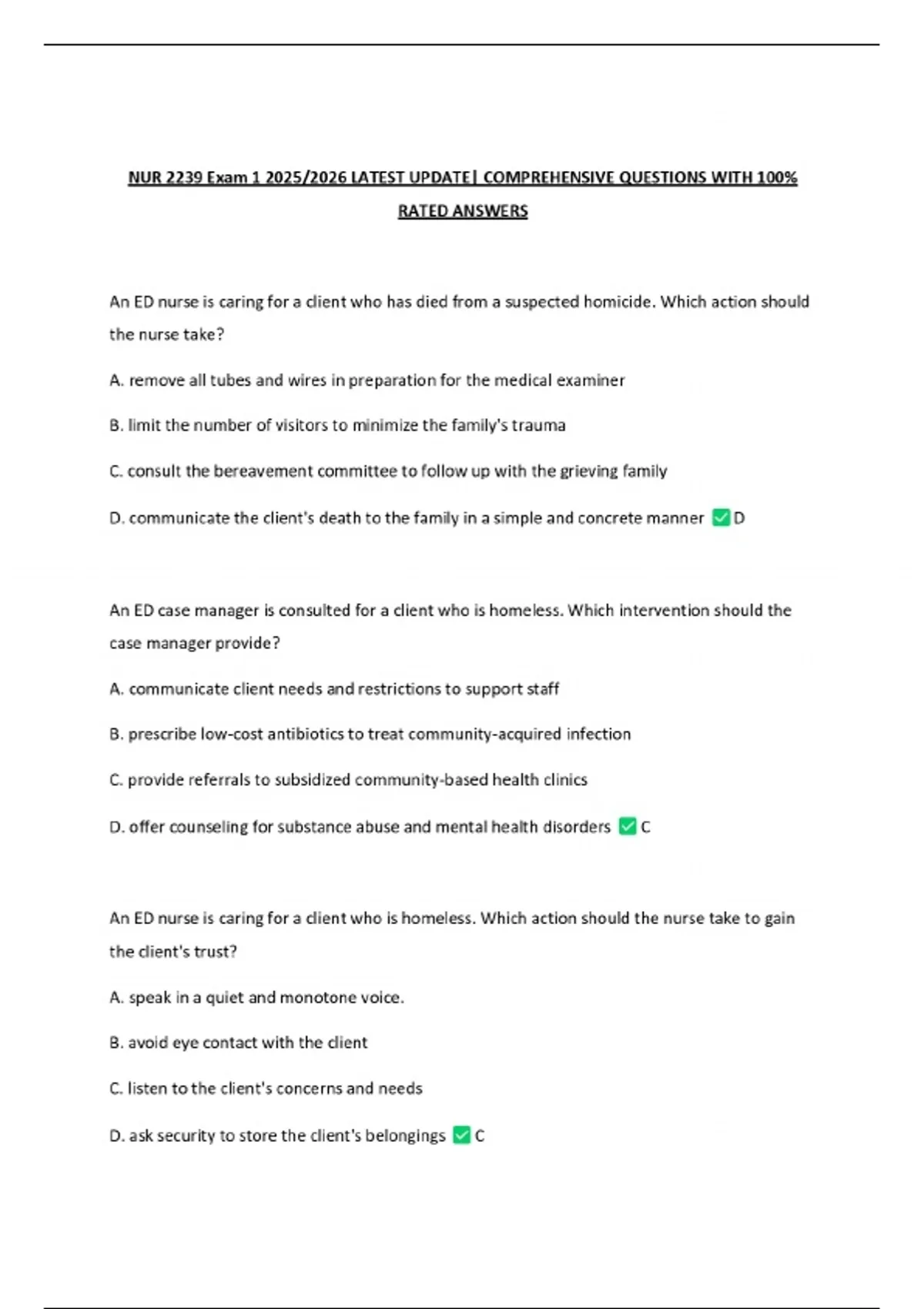 NUR 2239 Exam 1 2025/2026 LATEST UPDATE| COMPREHENSIVE QUESTIONS WITH 100% RATED ANSWERS