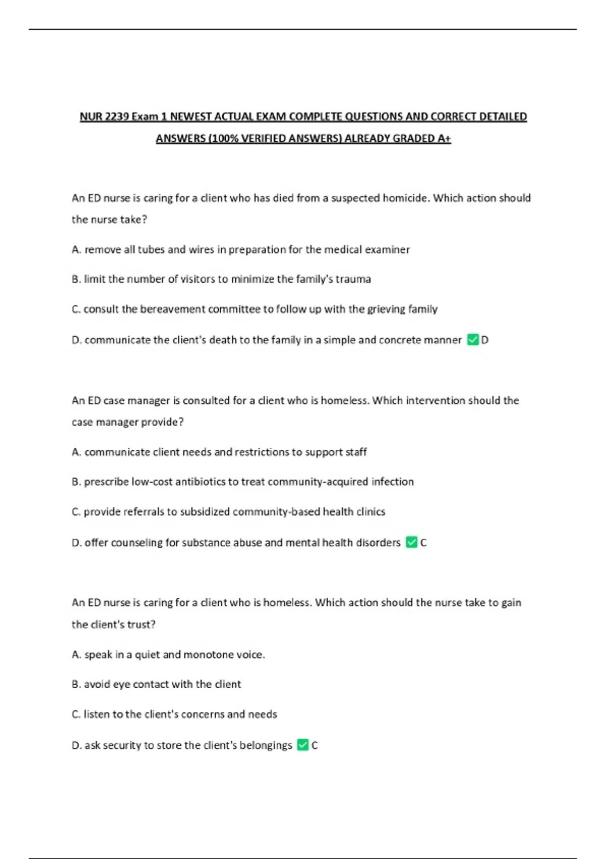 PACKAGE-::NUR 2239 EXAMS WITH CORRECT ANSWERS