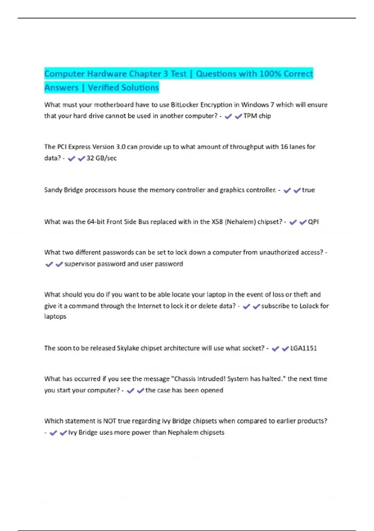 Computer Hardware Chapter 3 Test | Questions with 100% Correct Answers | Verified Solutions