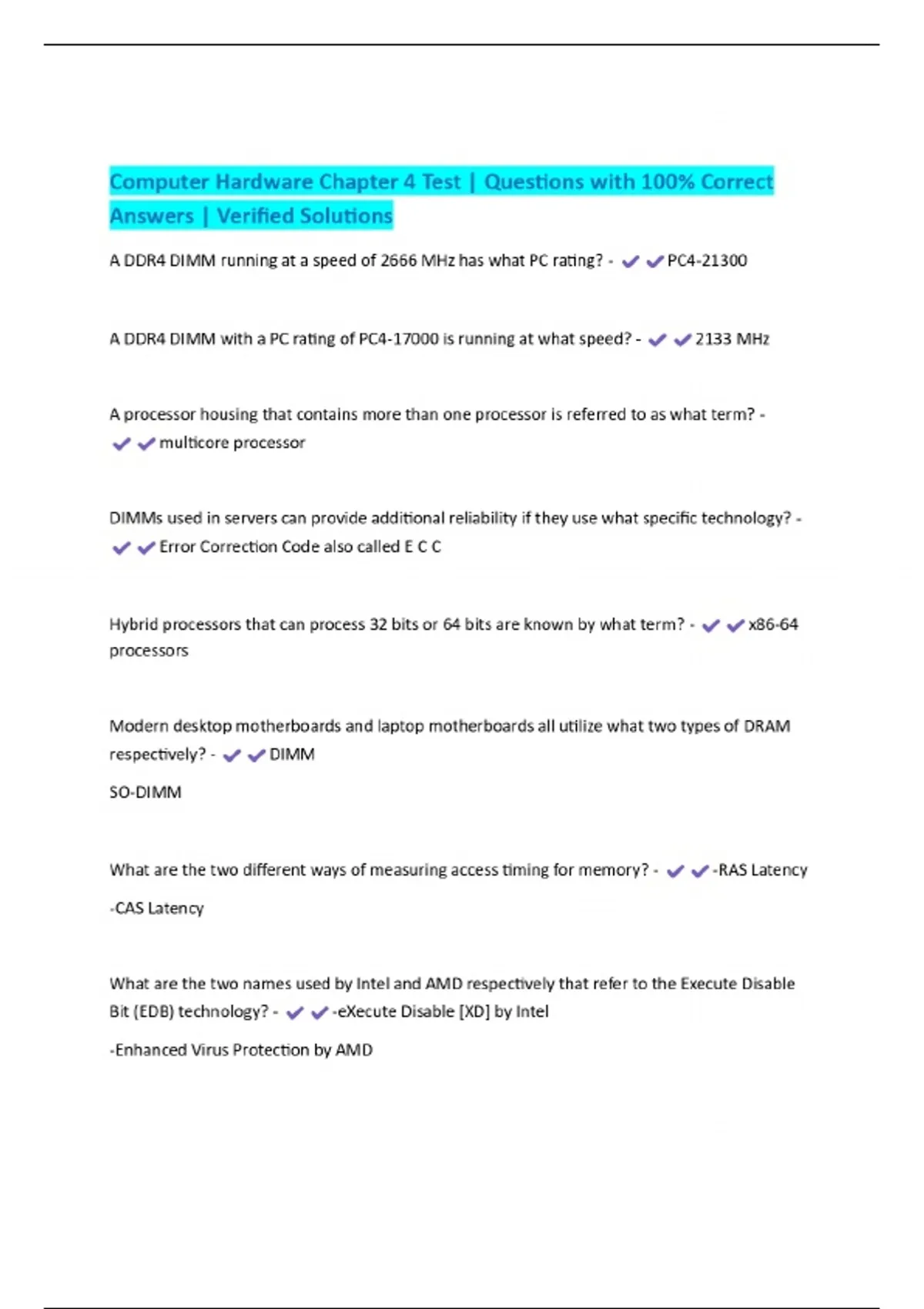 Computer Hardware Chapter 4 Test | Questions with 100% Correct Answers | Verified Solutions