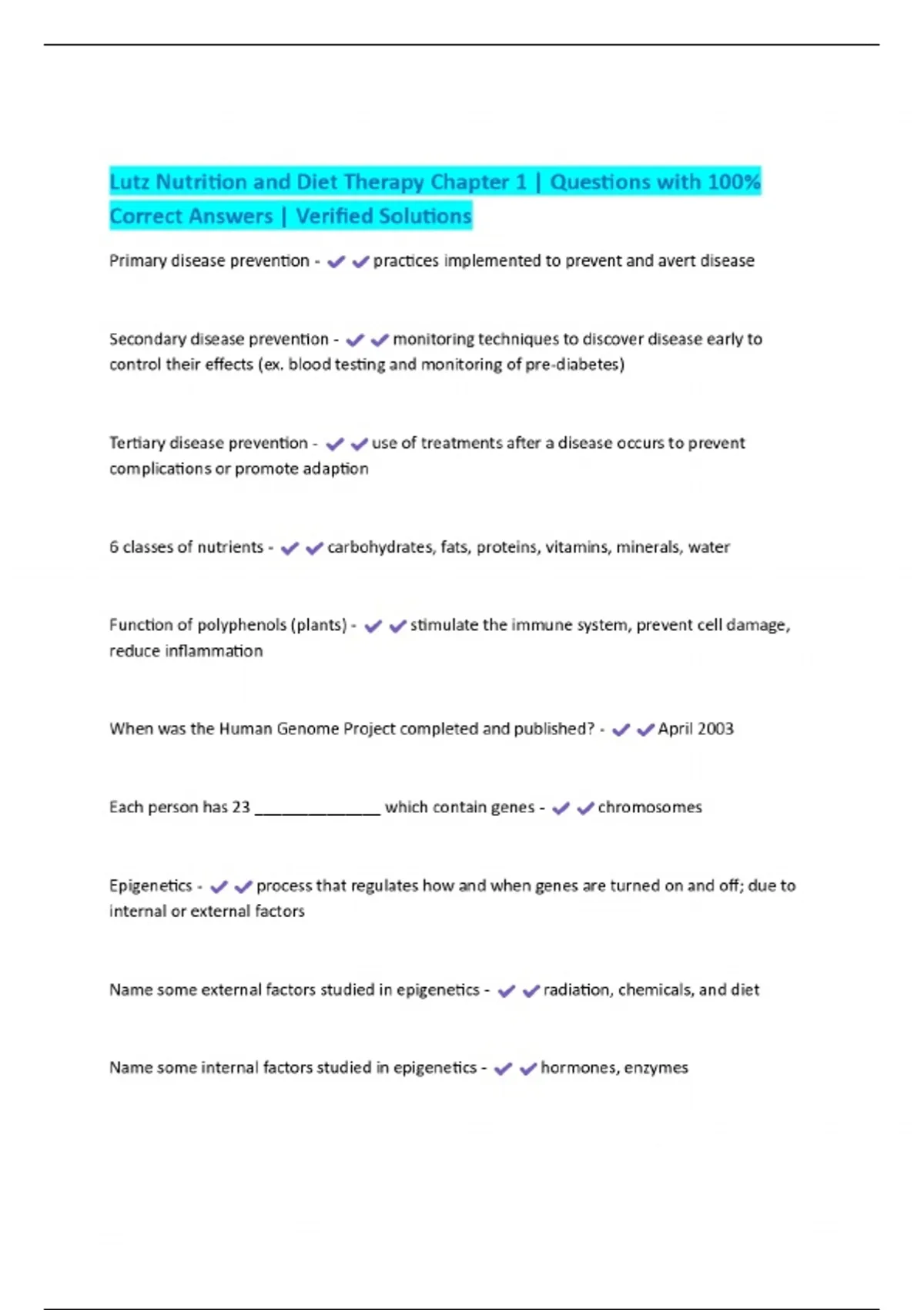 Lutz Nutrition and Diet Therapy Chapter 1 | Questions with 100% Correct Answers | Verified Solutions