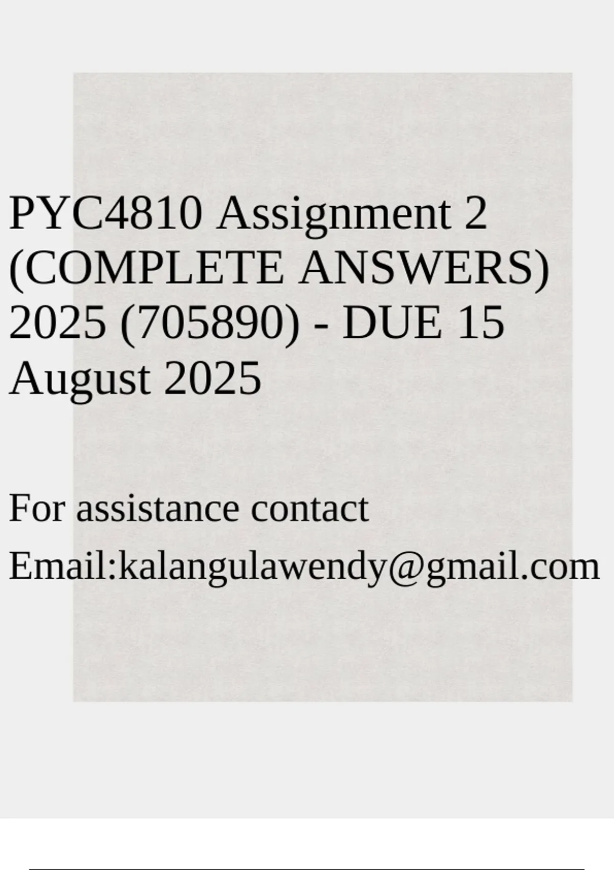PYC4810 Assignment 2 (COMPLETE ANSWERS) 2025 (705890) - DUE 15 August 2025