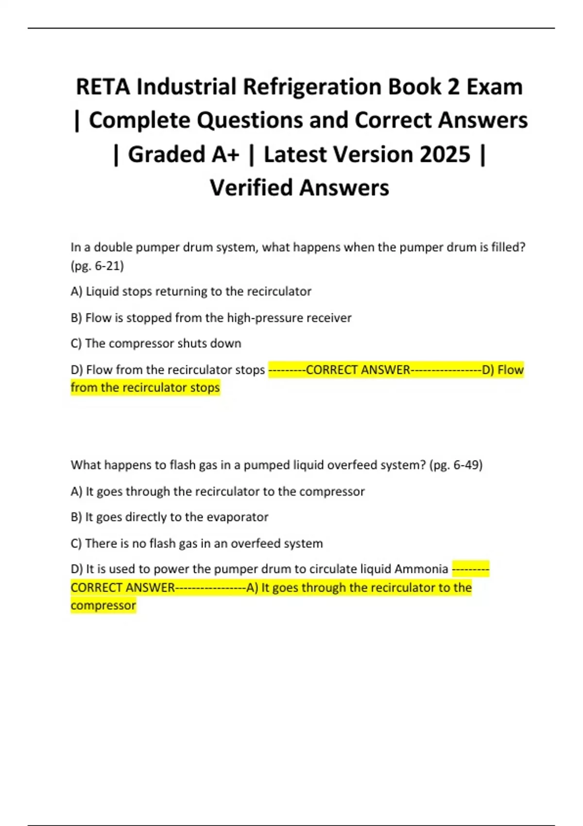 | Complete Questions and Correct Answers