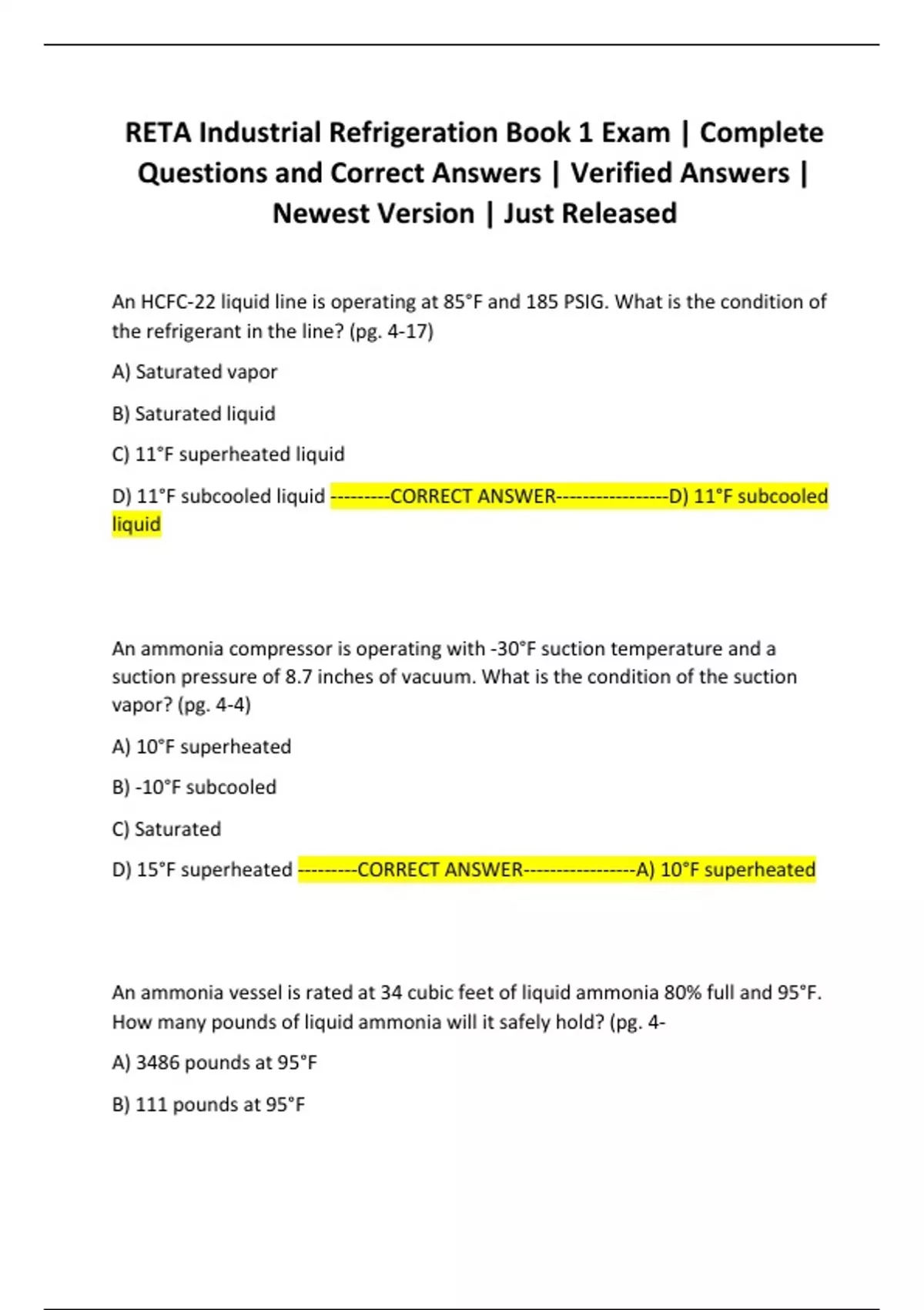 D) 11°F subcooled liquid ---------CORRECT ANSWER-----------------D) 11°F subcooled
