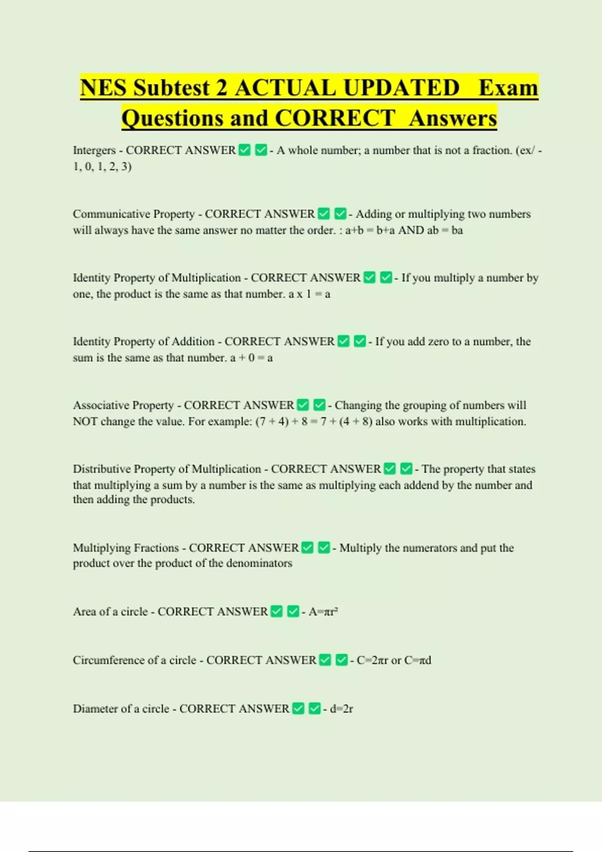 Questions and CORRECT Answers