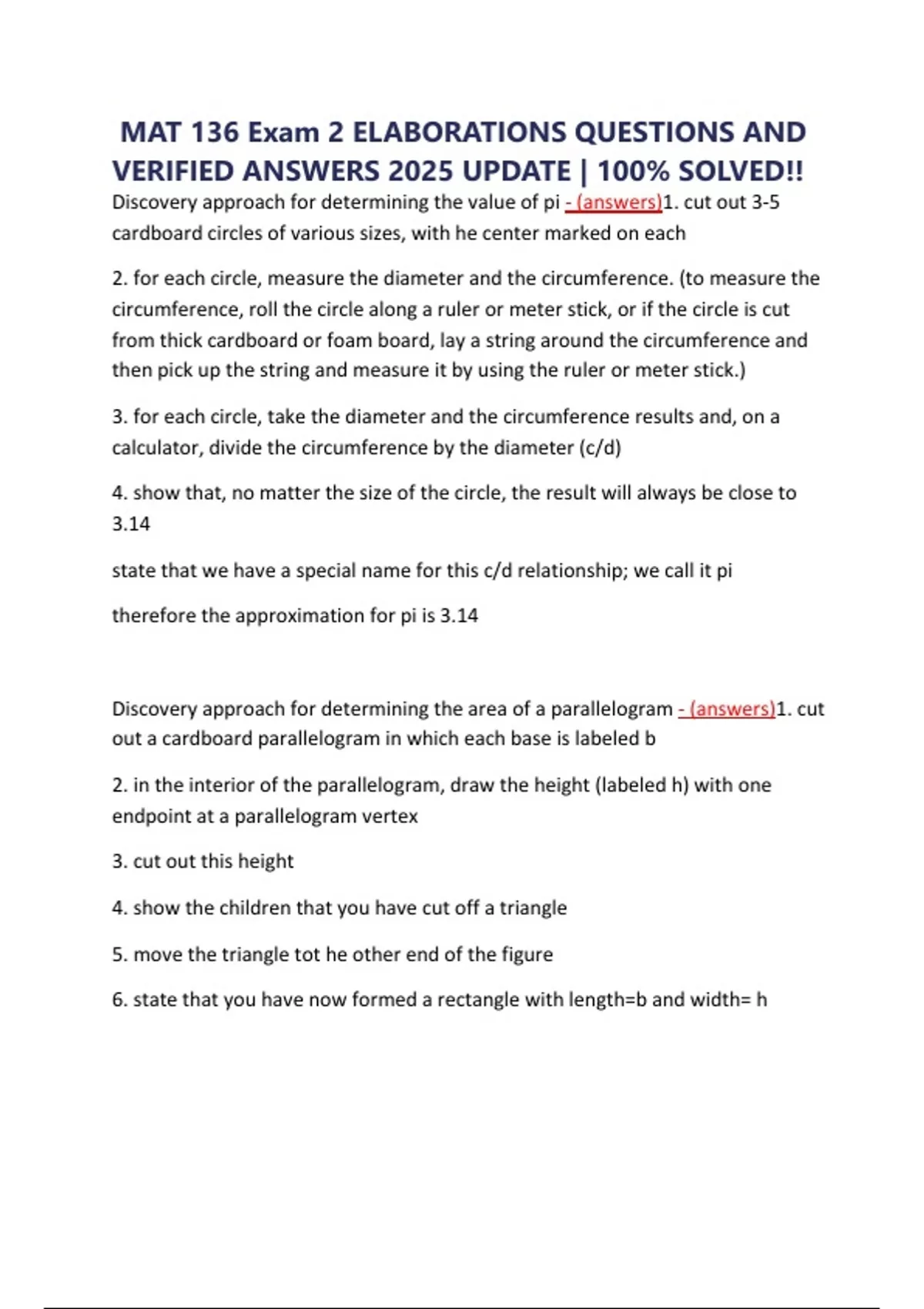 MAT 136 Exam 2 ELABORATIONS QUESTIONS AND