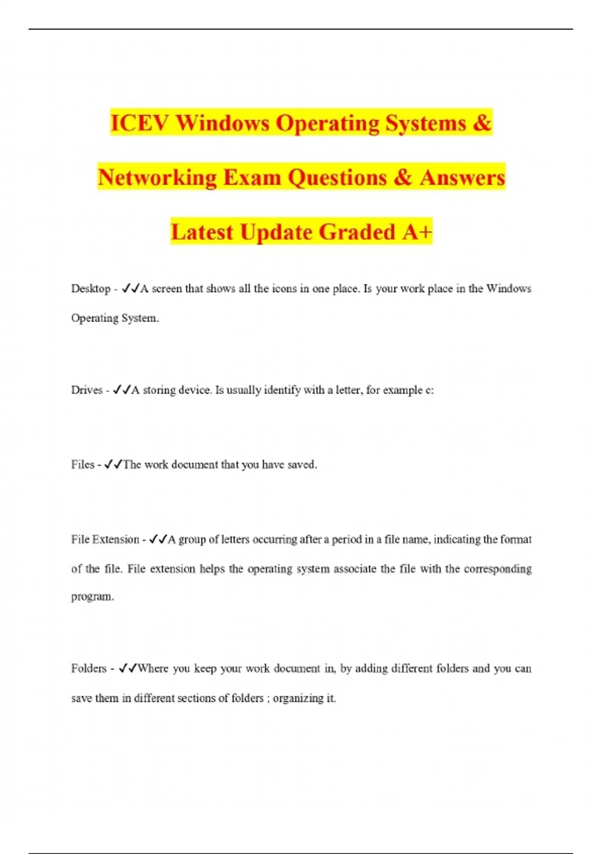 ICEV Windows Operating Systems & Networking Exam Questions & Answers Latest Update Graded A+