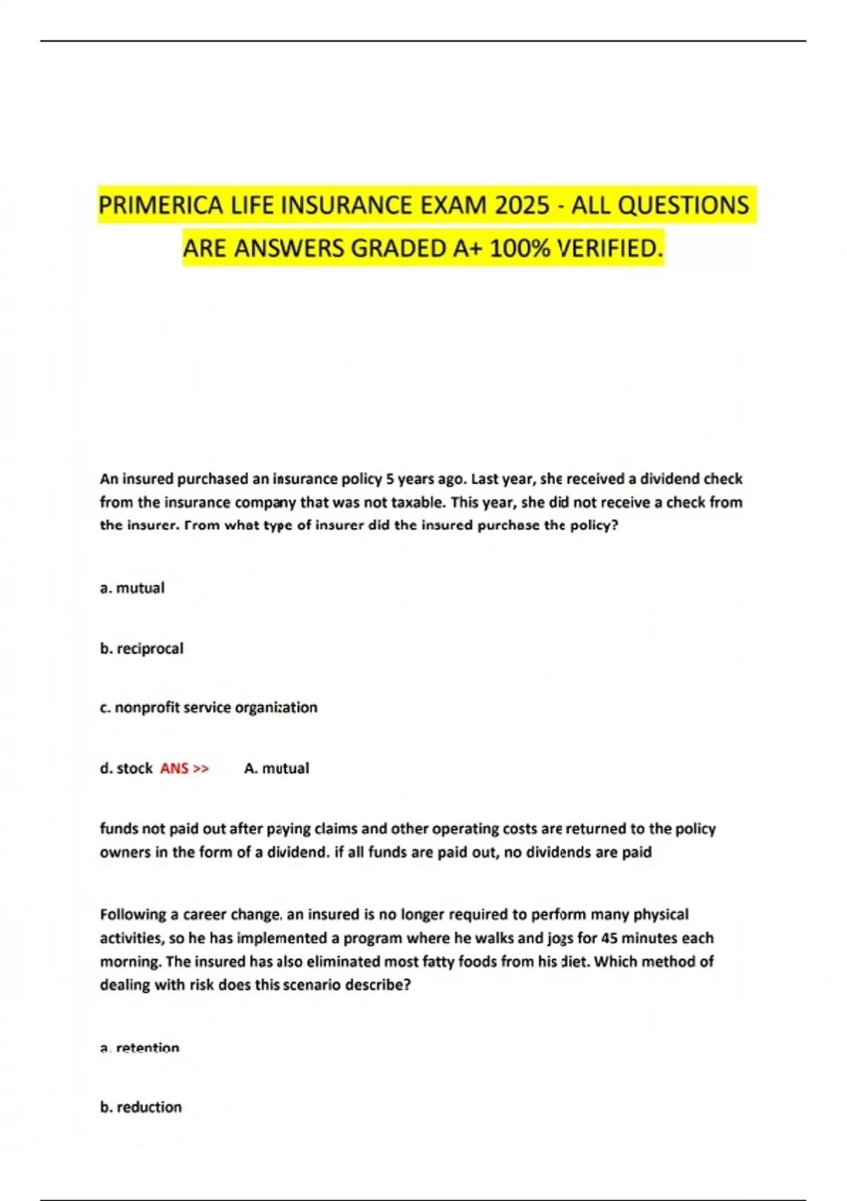 PRIMERICA LIFE INSURANCE EXAM 2025 - ALL QUESTIONS ARE ANSWERS GRADED A+ 100% VERIFIED.