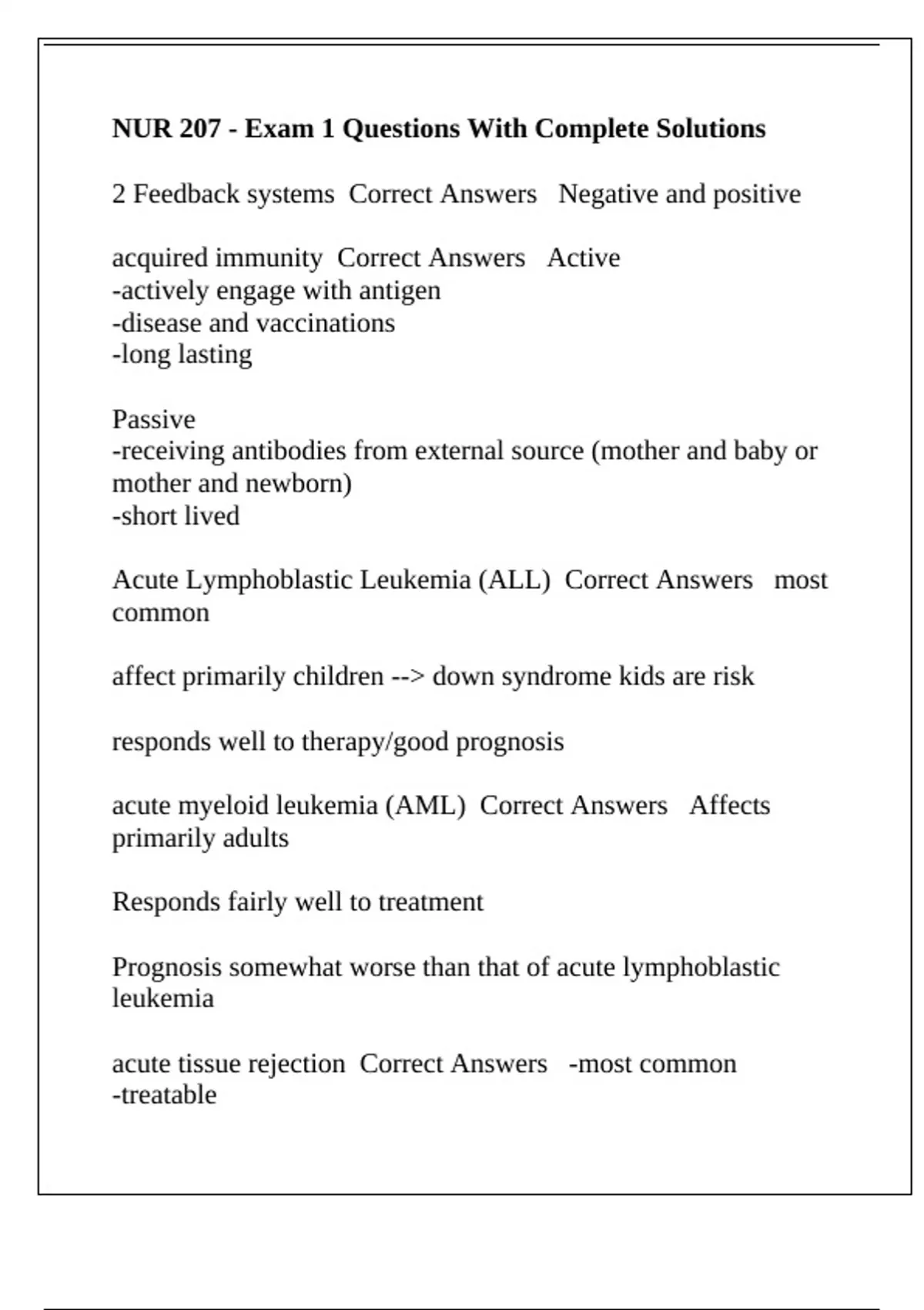acute myeloid leukemia (AML) Correct Answers Affects