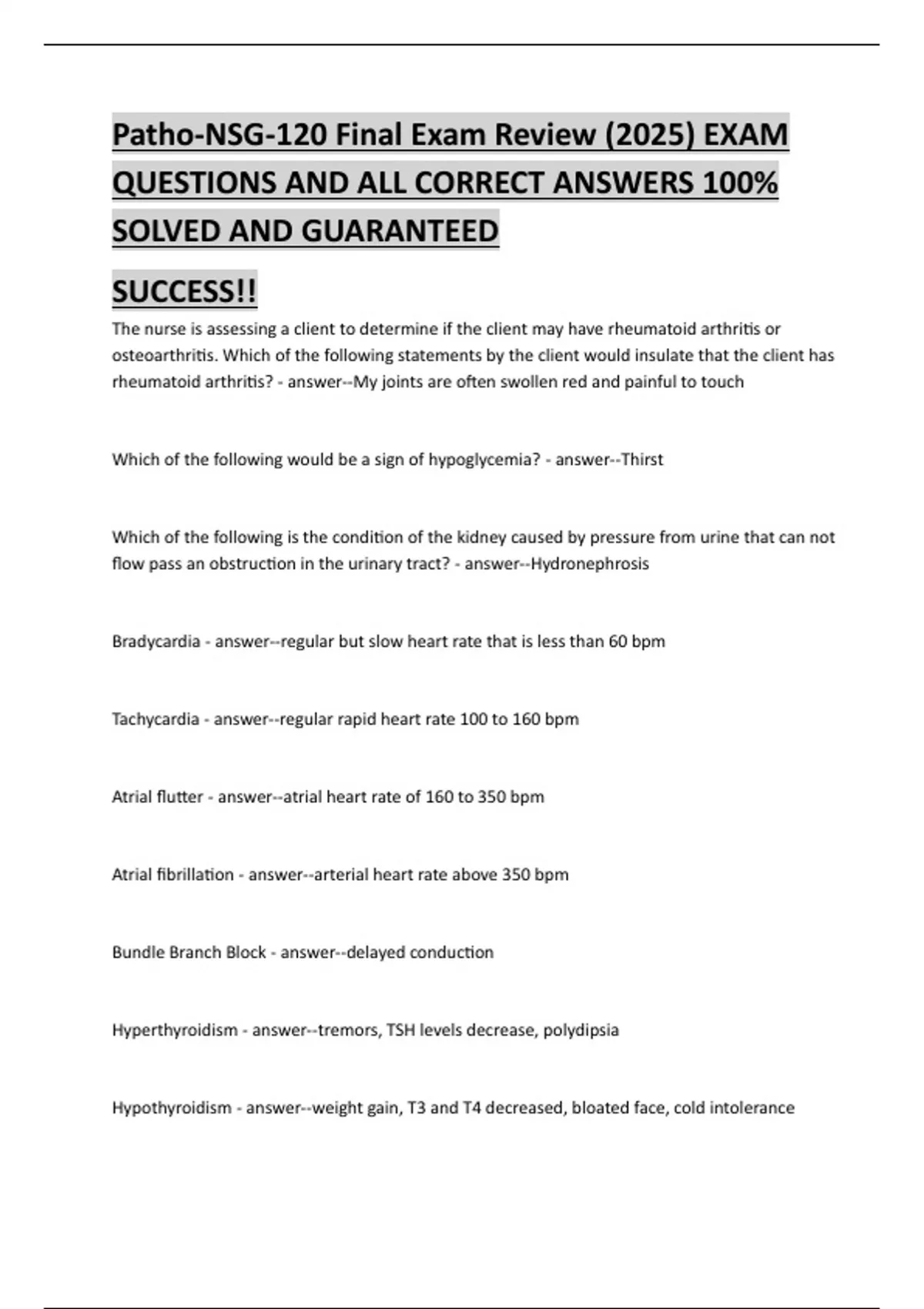 Patho-NSG-120 Final Exam Review (2025) EXAM