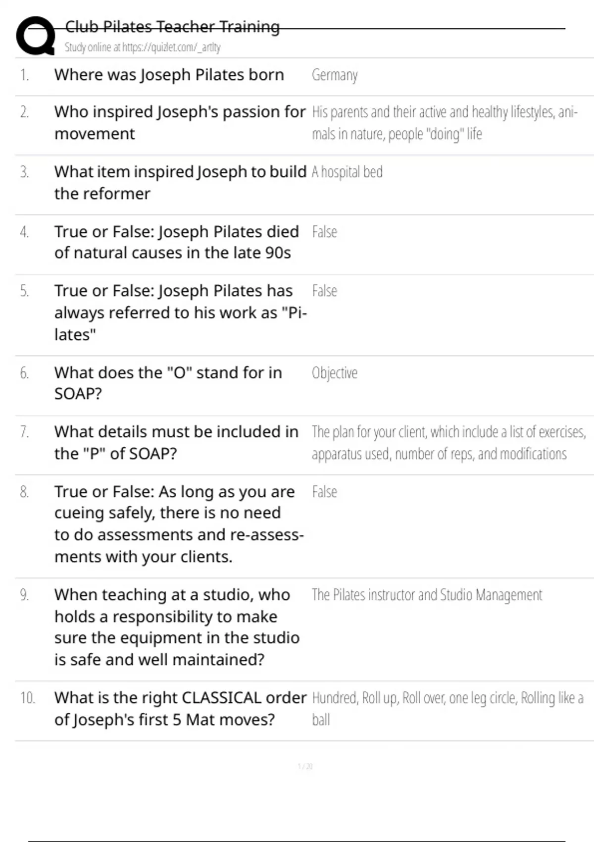 5. True or False: Joseph Pilates has False