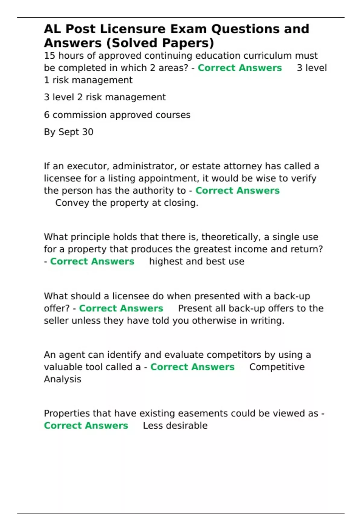 AL Post Licensure Exam Questions and Answers (Solved Papers).