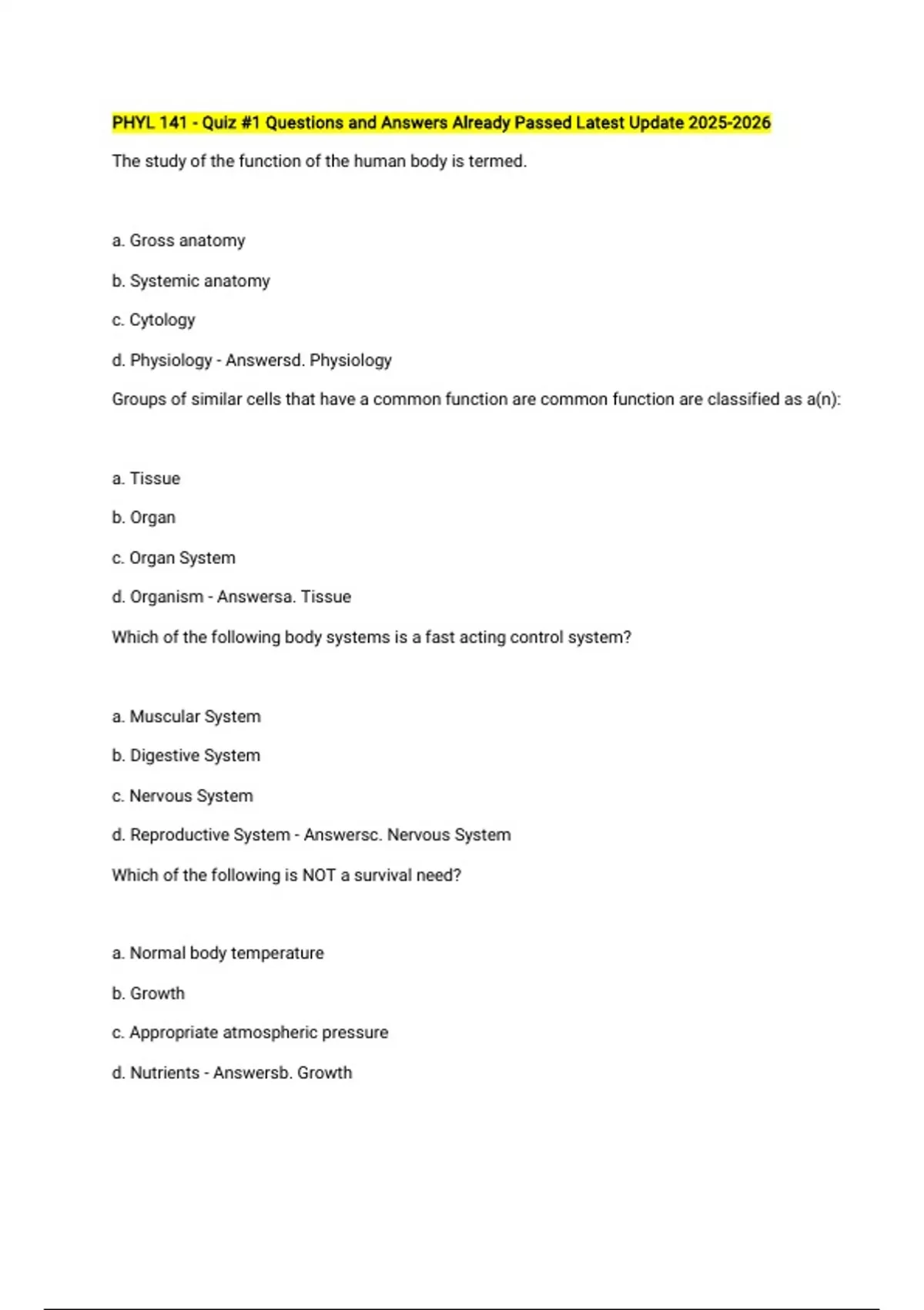 d. Physiology - Answersd. Physiology