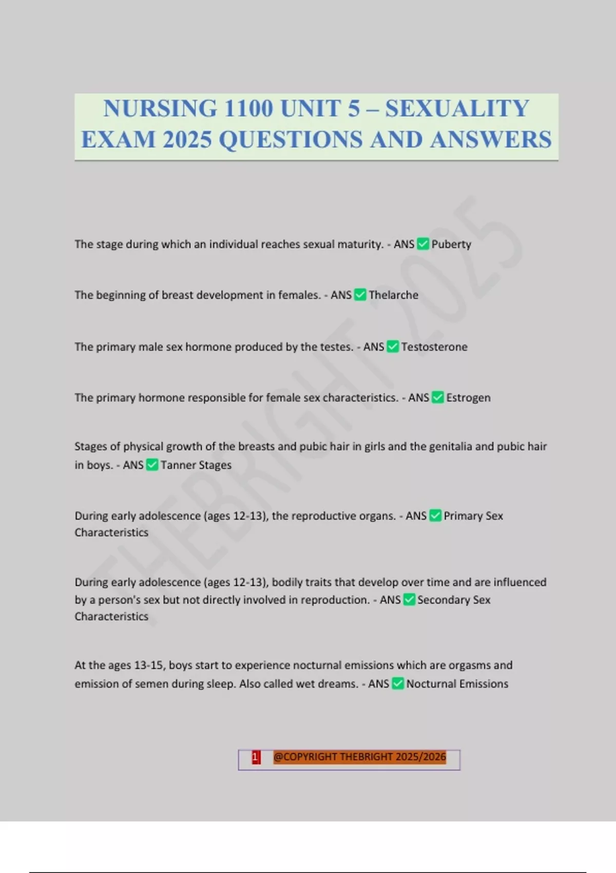 NURSING 1100 UNIT 5 – SEXUALITY EXAM 2025 QUESTIONS AND ANSWERS