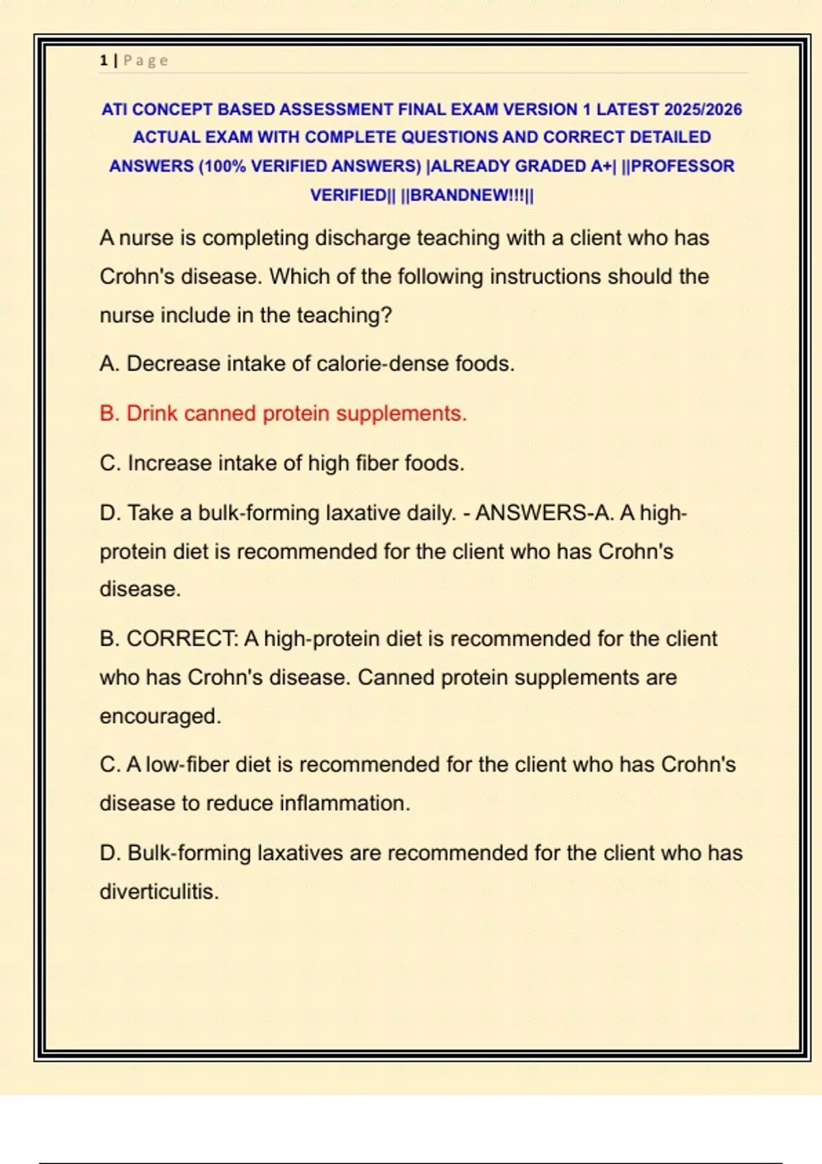 ATI CONCEPT BASED ASSESSMENT FINAL EXAM VERSION 1 LATEST 2025/2026