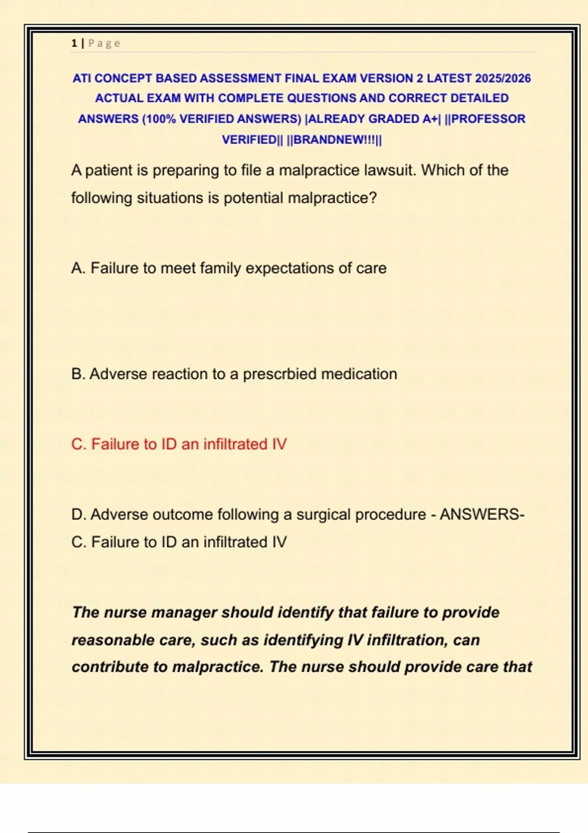 ATI CONCEPT BASED ASSESSMENT FINAL EXAM VERSION 2 LATEST 2025/2026