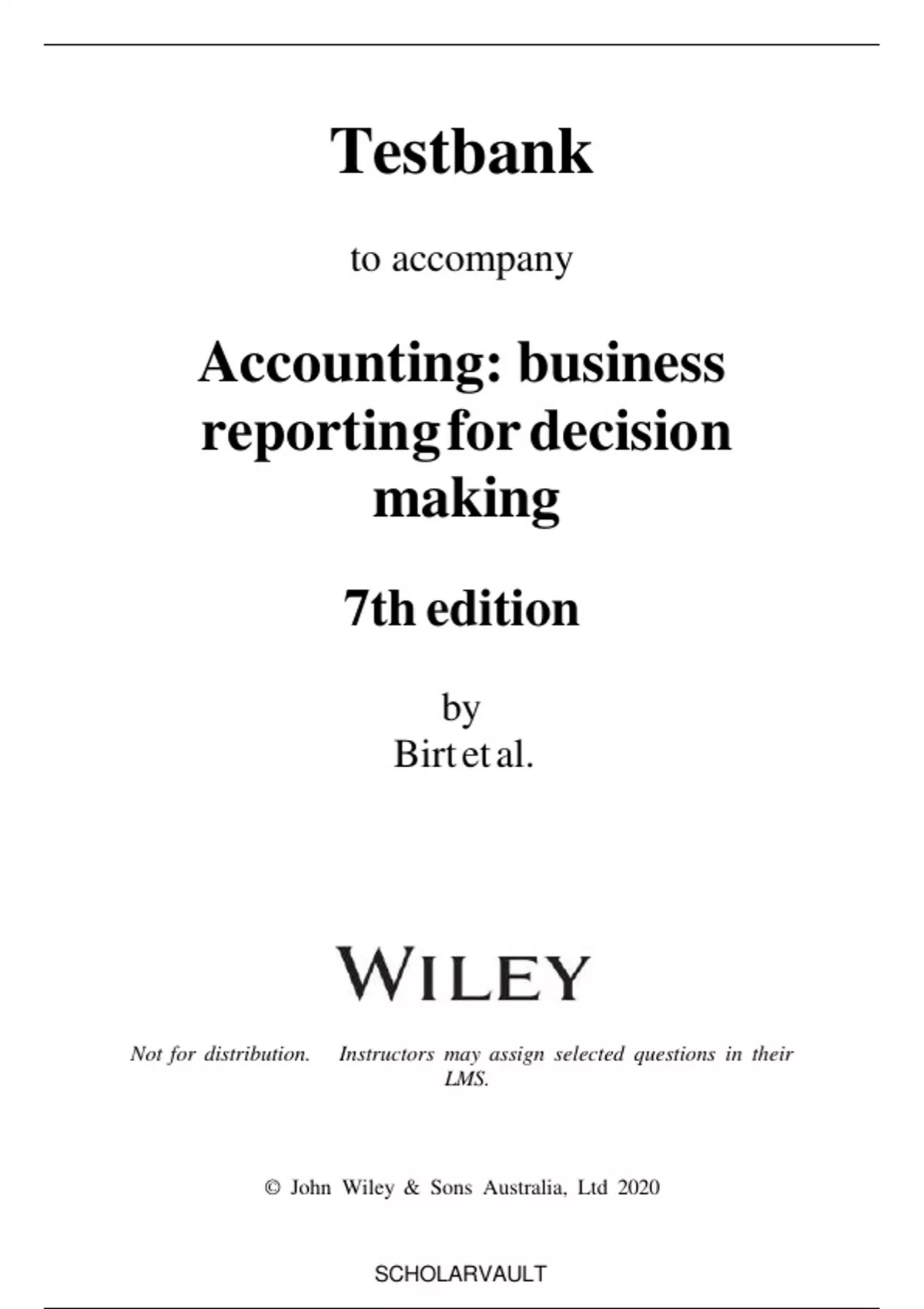 Test Bank for Accounting,, Business Reporting for Decision Making,, 7th Edition Jacqueline Birt, Keryn Chalmers, Suzanne Maloney, Albie Brooks, Judy Oliver, David Bond | Complete Guide A+