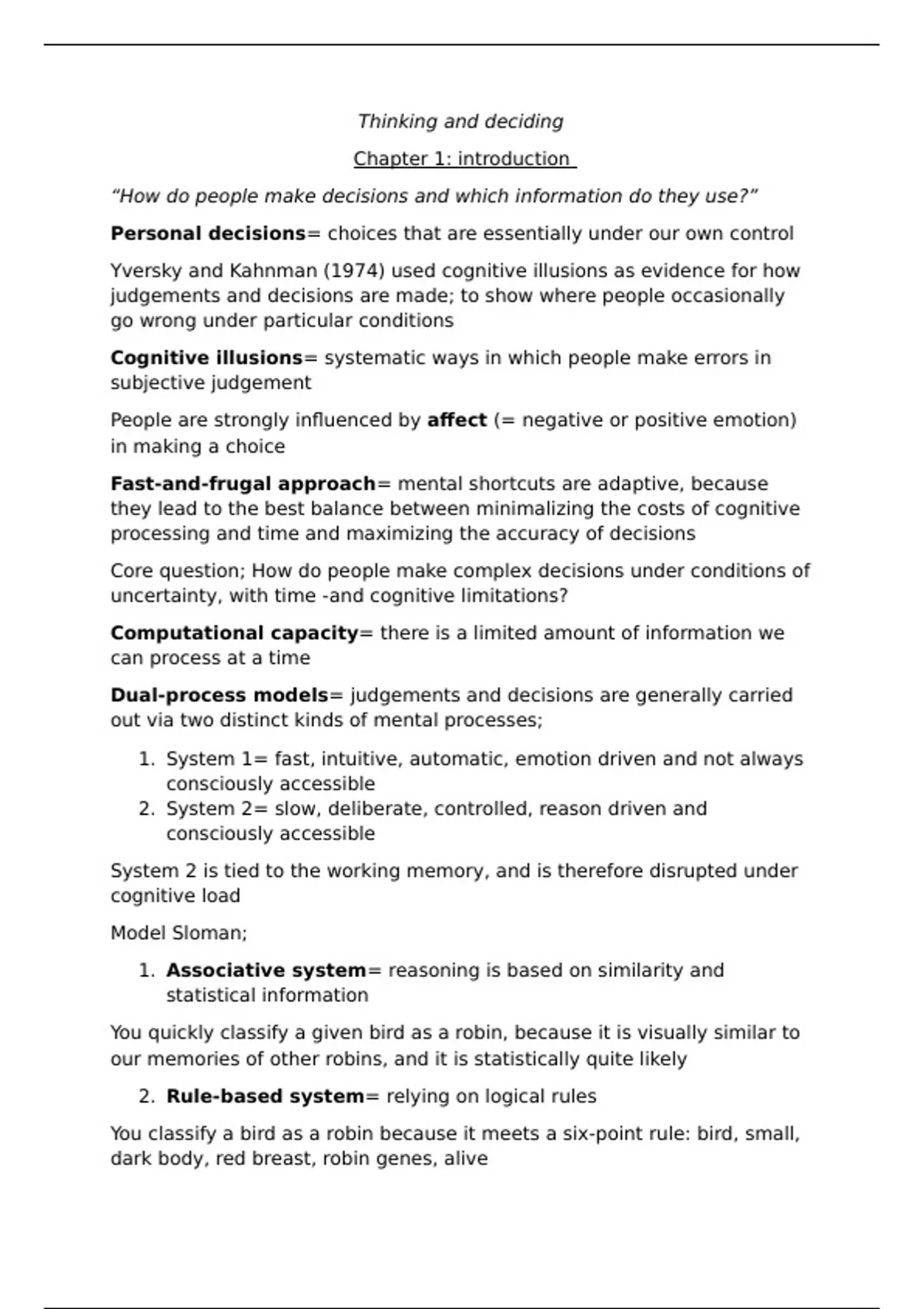 1. System 1= fast, intuitive, automatic, emotion driven and not always