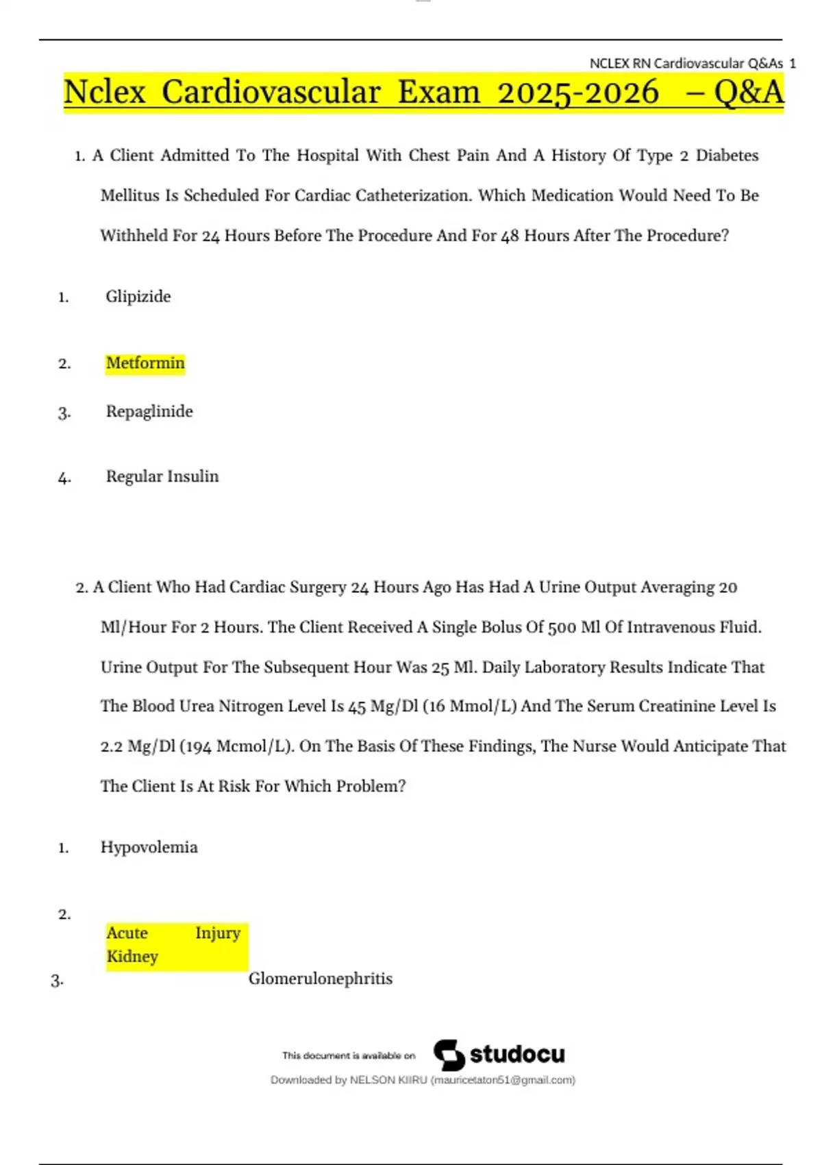 Nclex Cardiovascular Exam 2025-2026 – Q&A