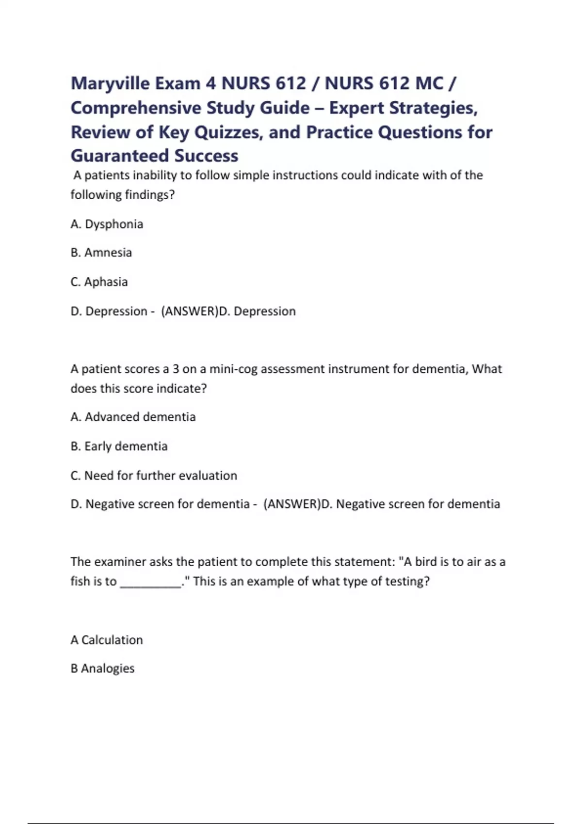 Maryville Exam 4 NURS 612 / NURS 612 MC /