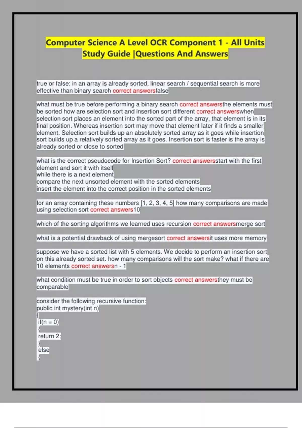Study Guide |Questions And Answers