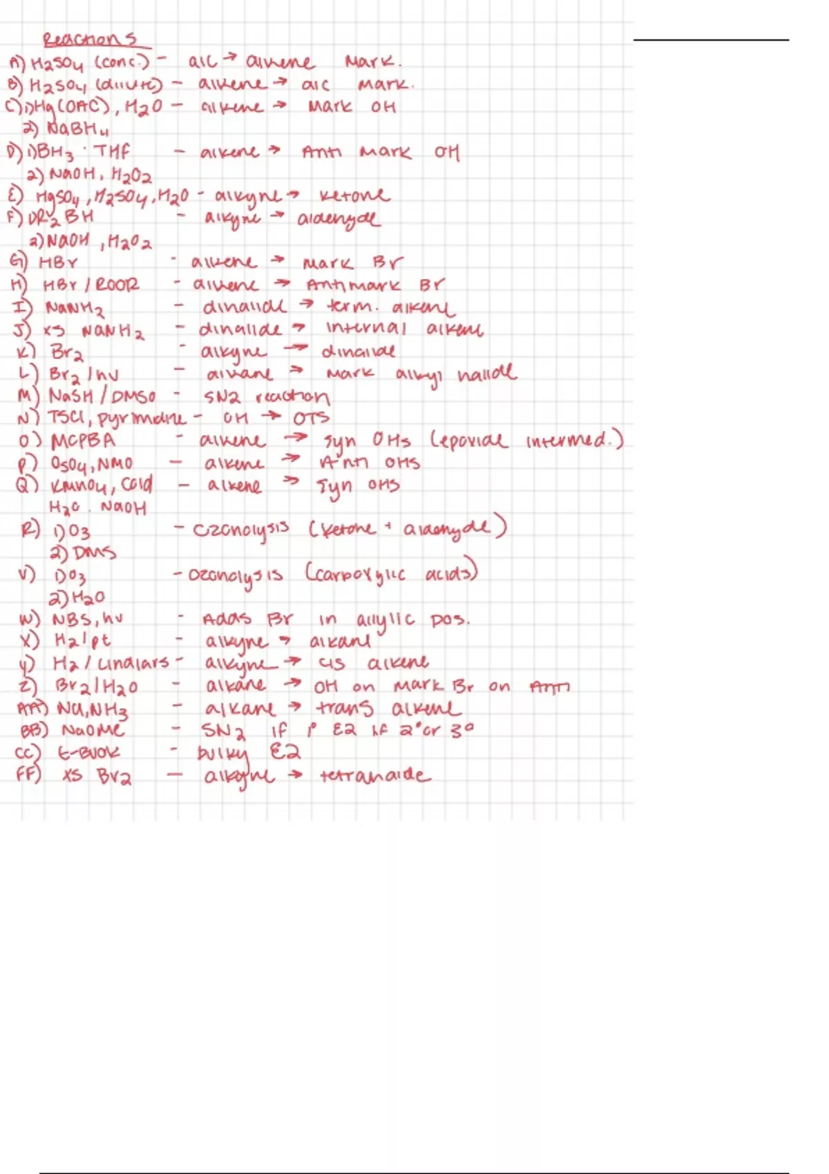 Organic chemistry 1 reactions summary Orgo 1 exam prep
