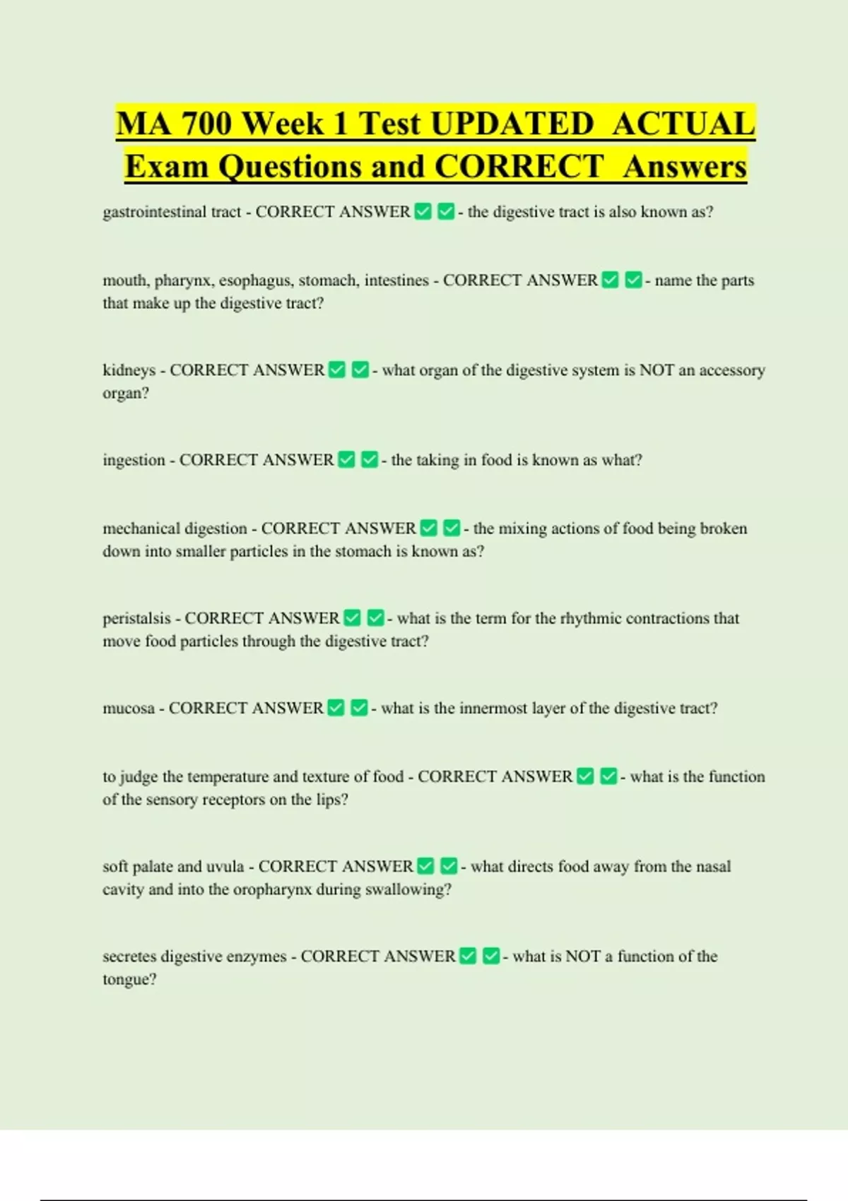 Exam Questions and CORRECT Answers