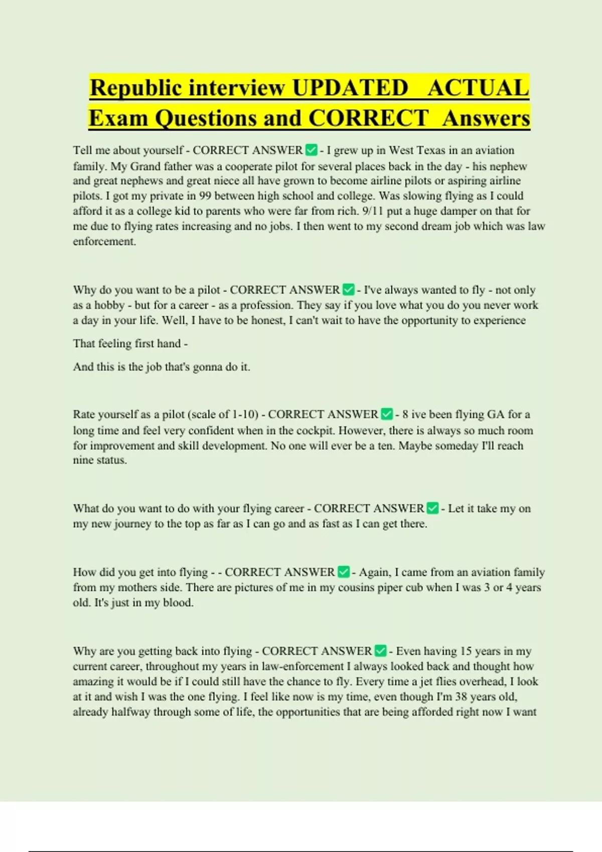 Why are you getting back into flying - CORRECT ANSWER - Even having 15 years in my
