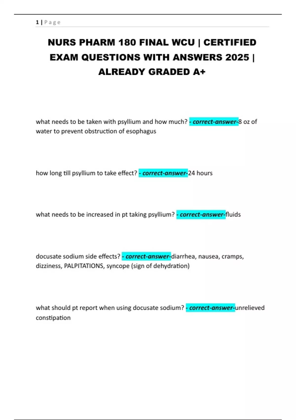 NURS PHARM 180 FINAL WCU | CERTIFIED