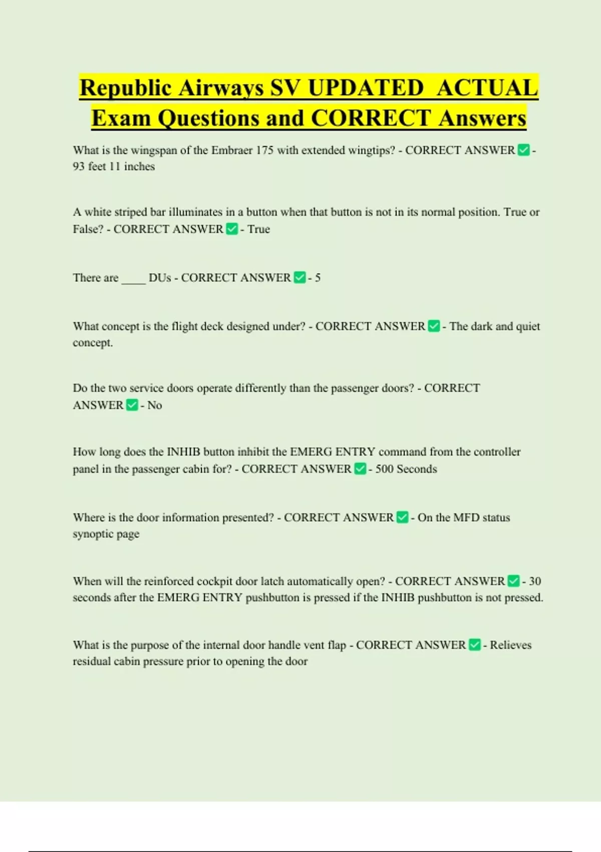 Republic Airways SV UPDATED ACTUAL Exam Questions and CORRECT Answers