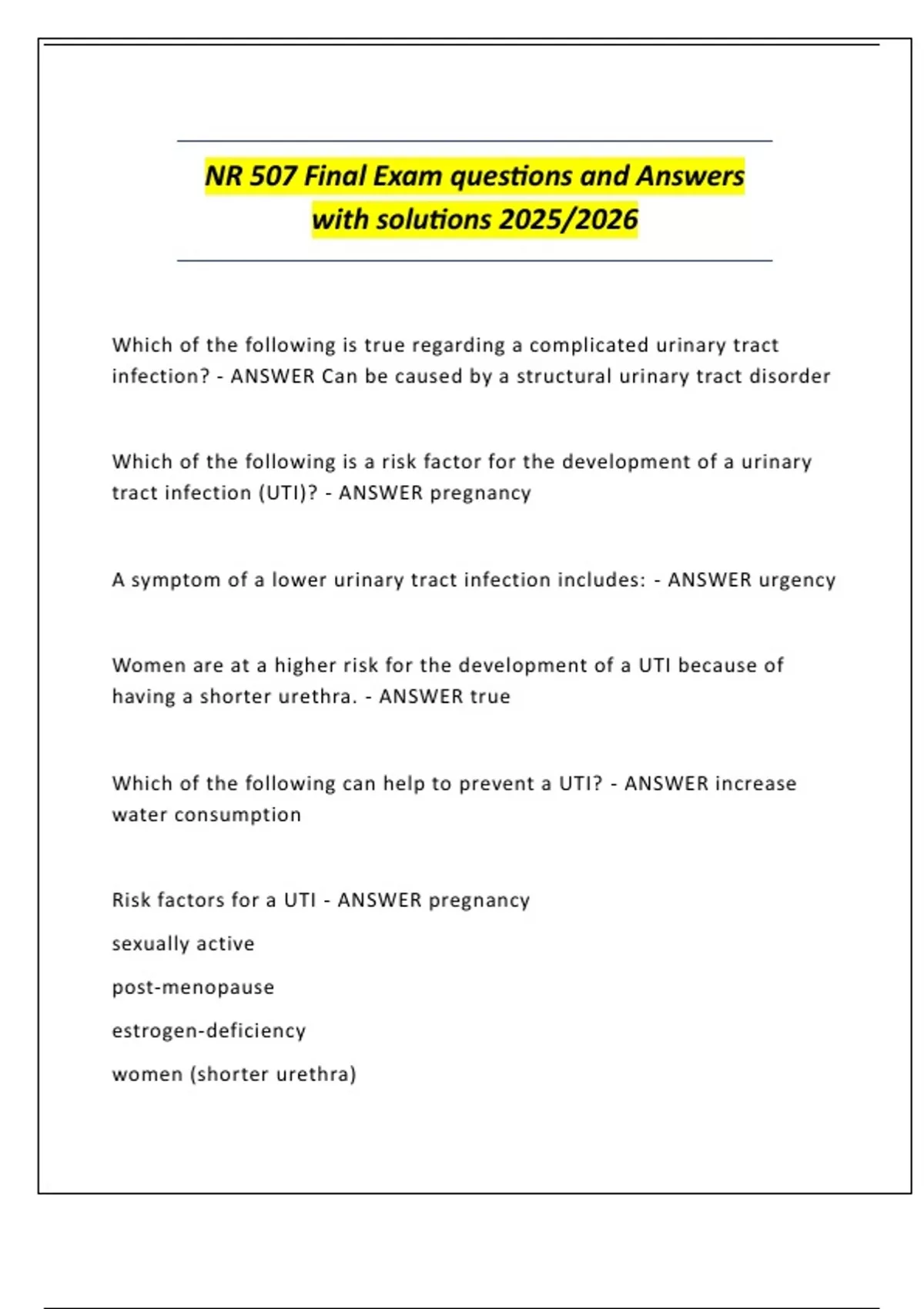 NR 507 Final Exam questions and Answers with solutions 2025/2026