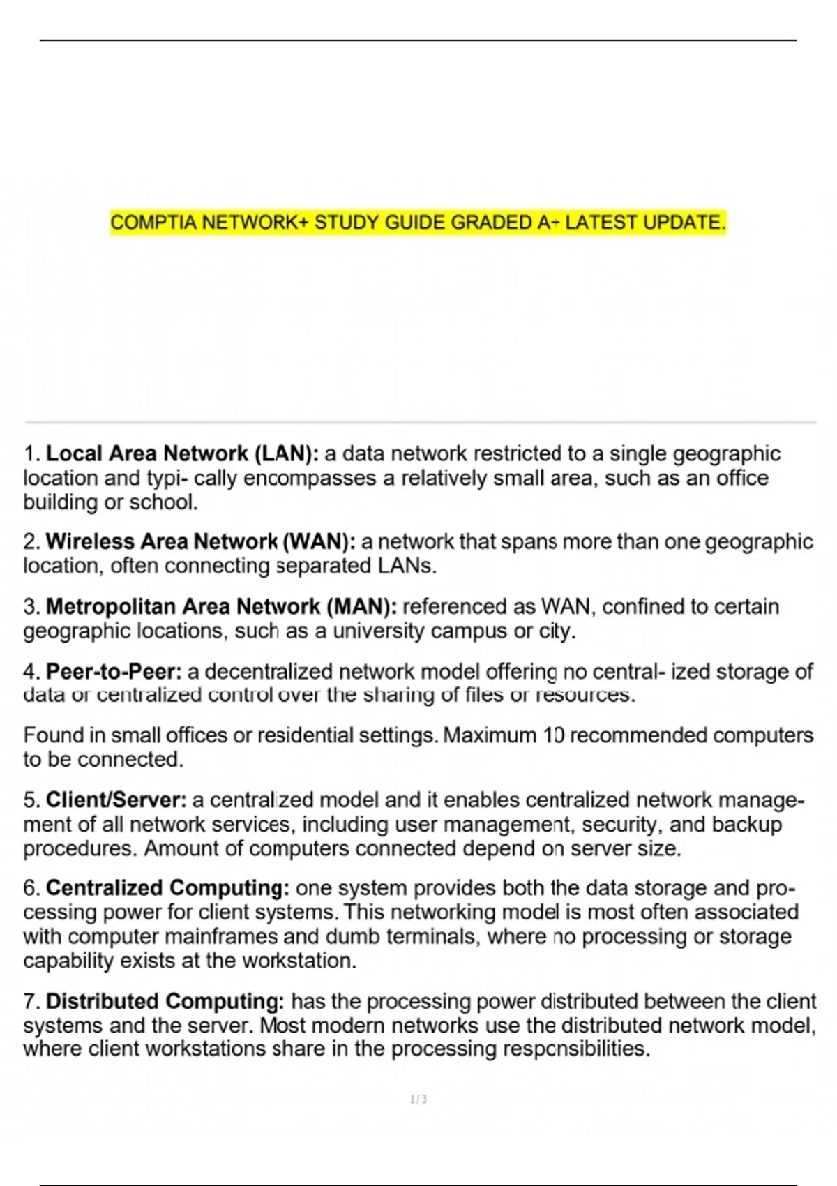 COMPTIA NETWORK+ STUDY GUIDE GRADED A+ LATEST UPDATE.