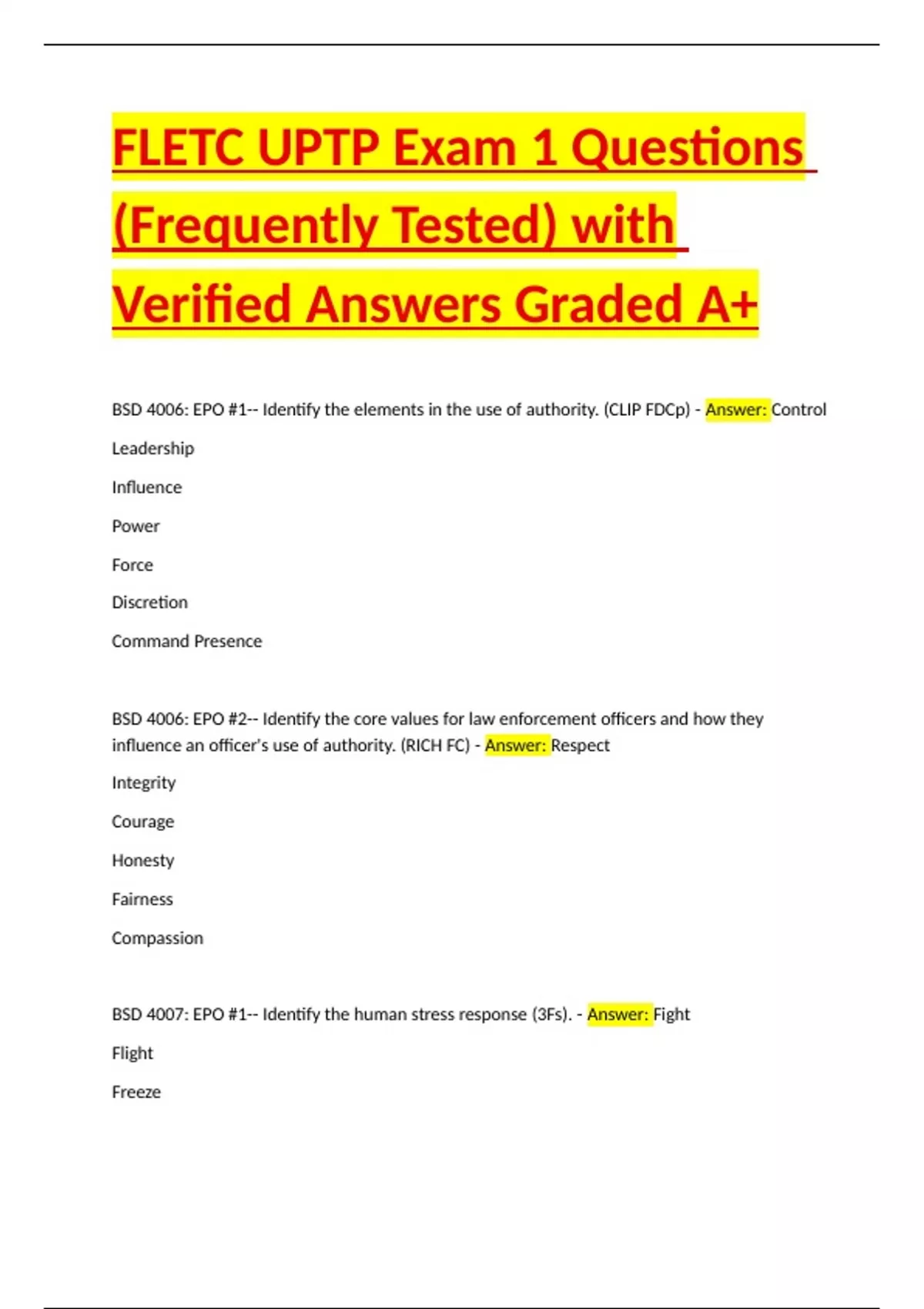 BSD 4006: EPO #2-- Identify the core values for law enforcement officers and how they