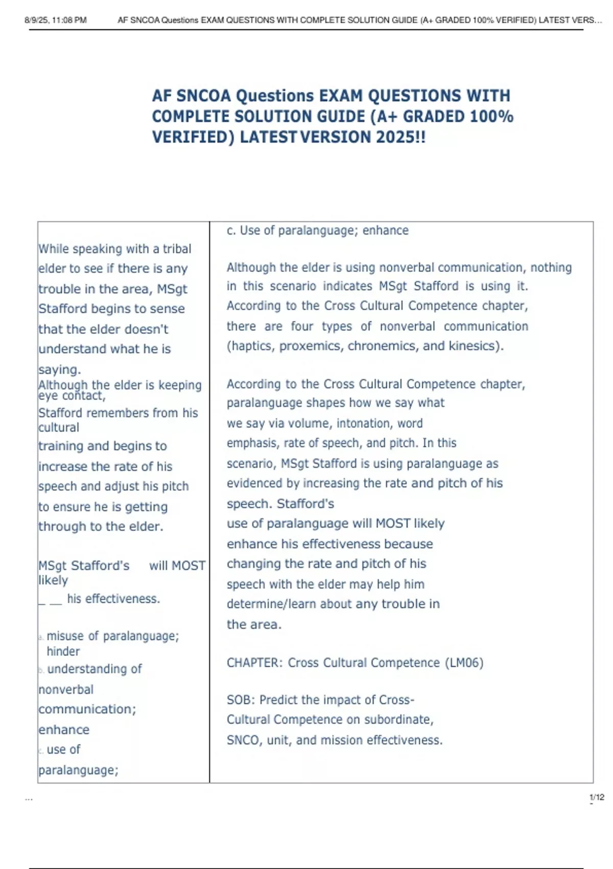 , 8/9/25, 11:08 PM AF SNCOA Questions EXAM QUESTIONS WITH COMPLETE SOLUTION GUIDE (A+ GRADED 100% VERIFIED) LATEST VERS…