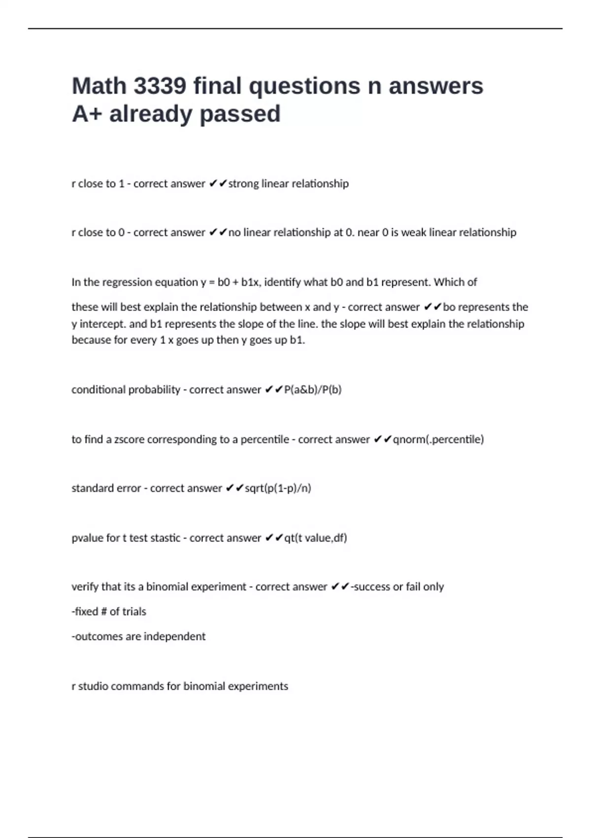 r close to 1 - correct answer ✔✔strong linear relationship