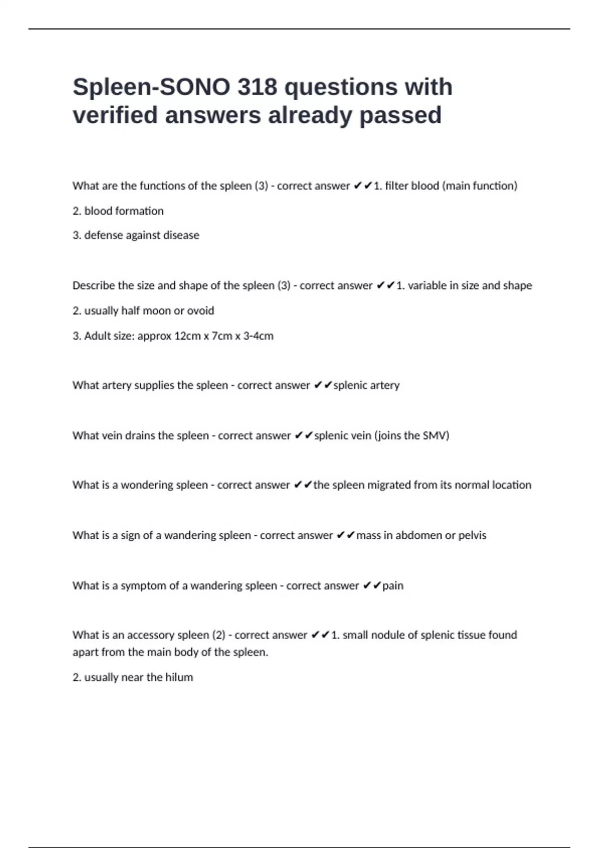 What is an accessory spleen (2) - correct answer ✔✔1. small nodule of splenic tissue found
