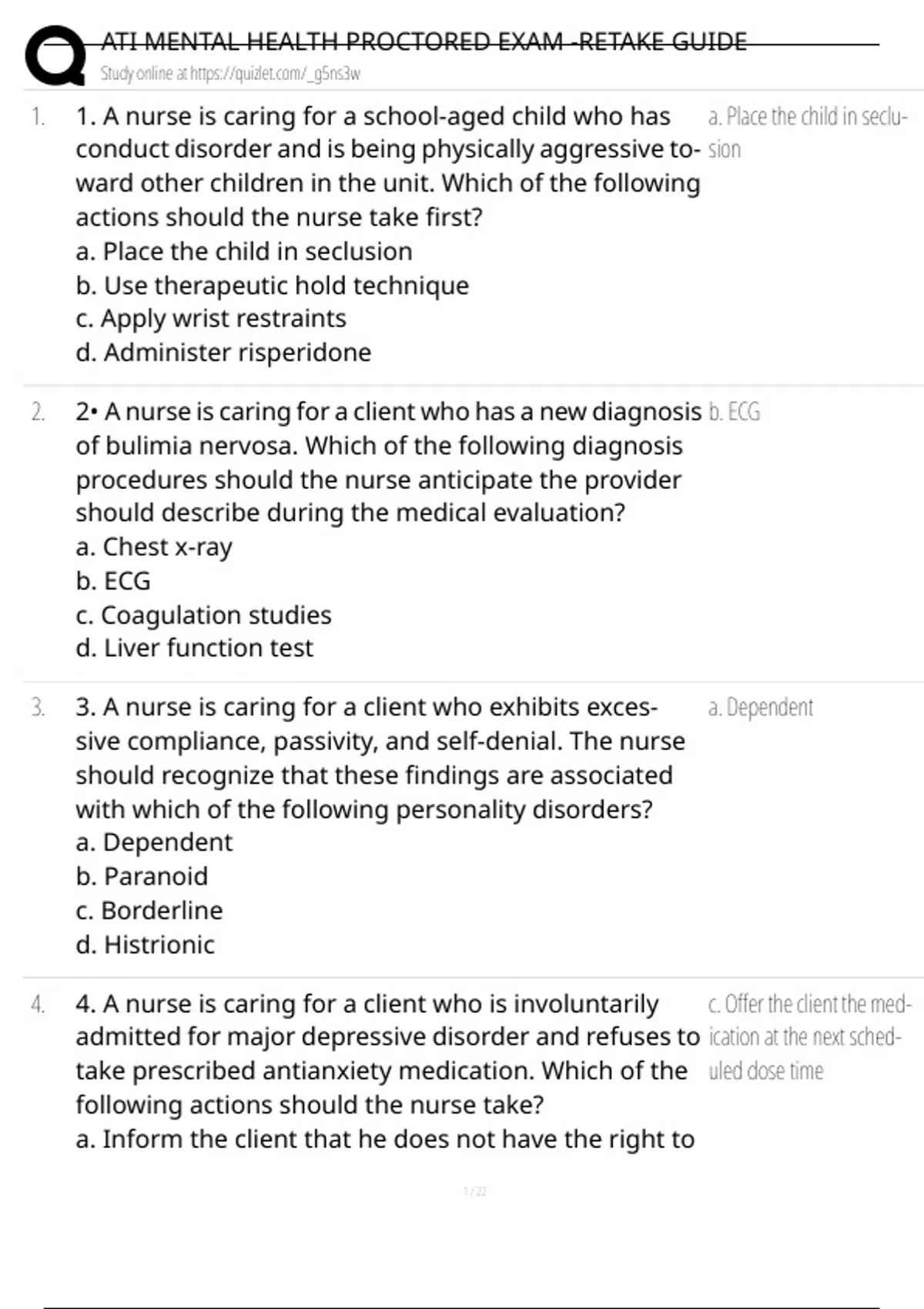 , ATI MENTAL HEALTH PROCTORED EXAM -RETAKE GUIDE