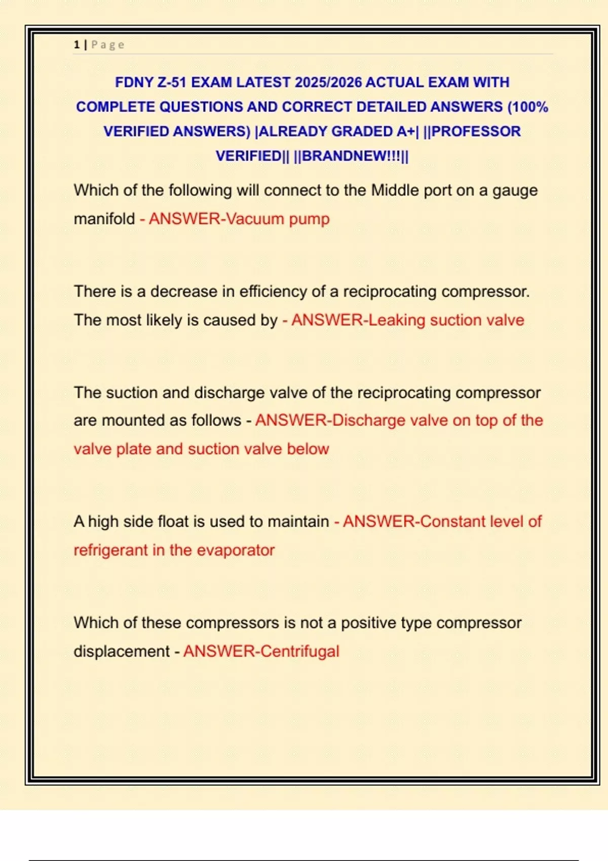 FDNY Z-51 EXAM LATEST 2025/2026 ACTUAL EXAM WITH COMPLETE QUESTIONS AND CORRECT DETAILED ANSWERS (100% VERIFIED ANSWERS) |ALREADY GRADED A+| ||PROFESSOR VERIFIED|| ||BRANDNEW!!!||