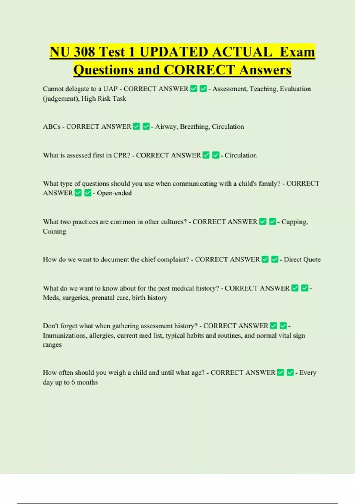 Questions and CORRECT Answers