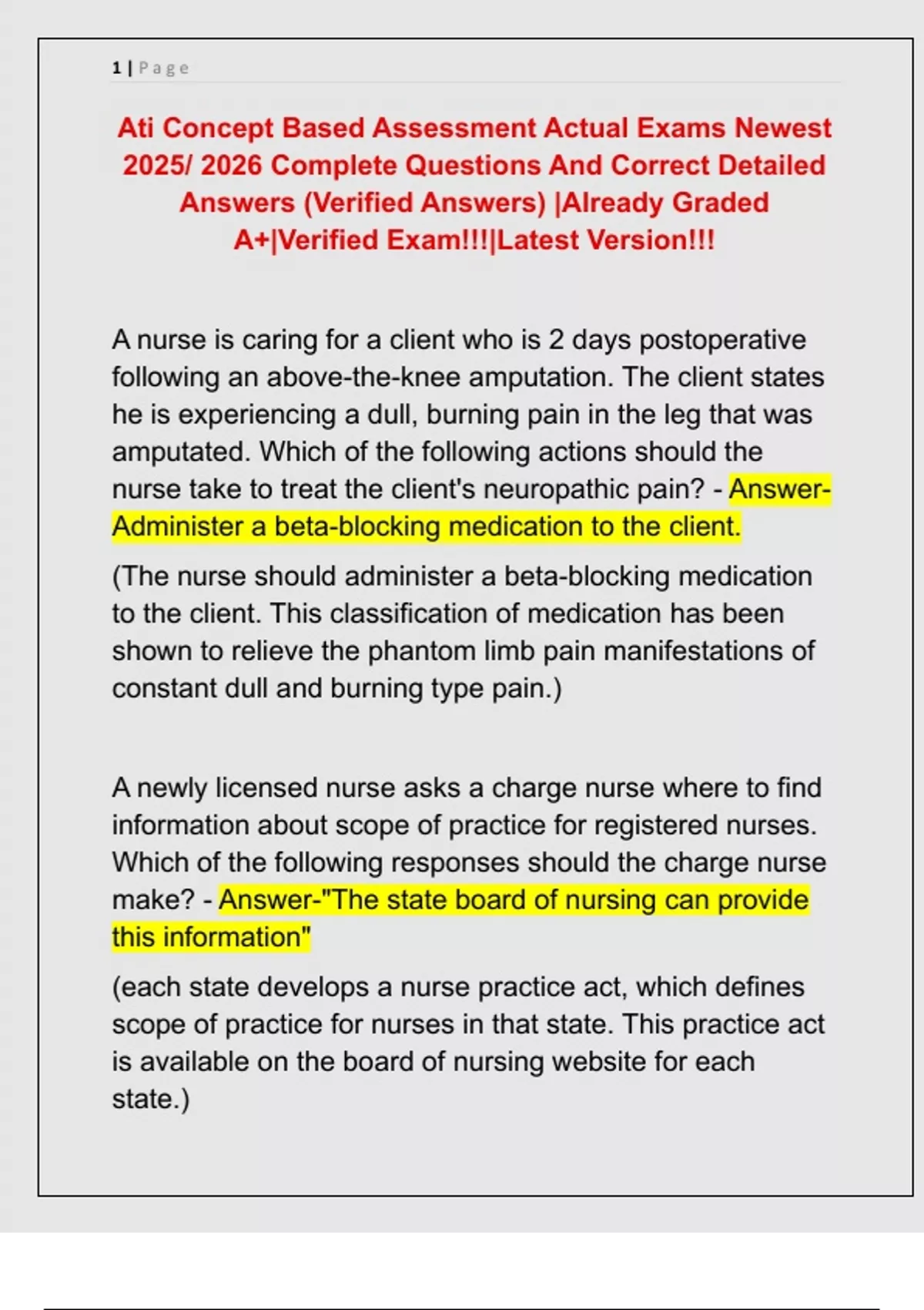 Ati Concept Based Assessment Actual Exams Newest