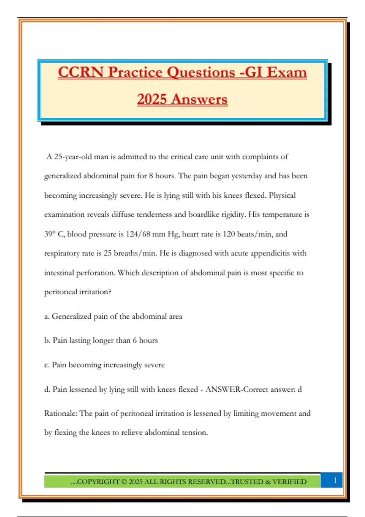 CCRN Practice Questions -GI Exam