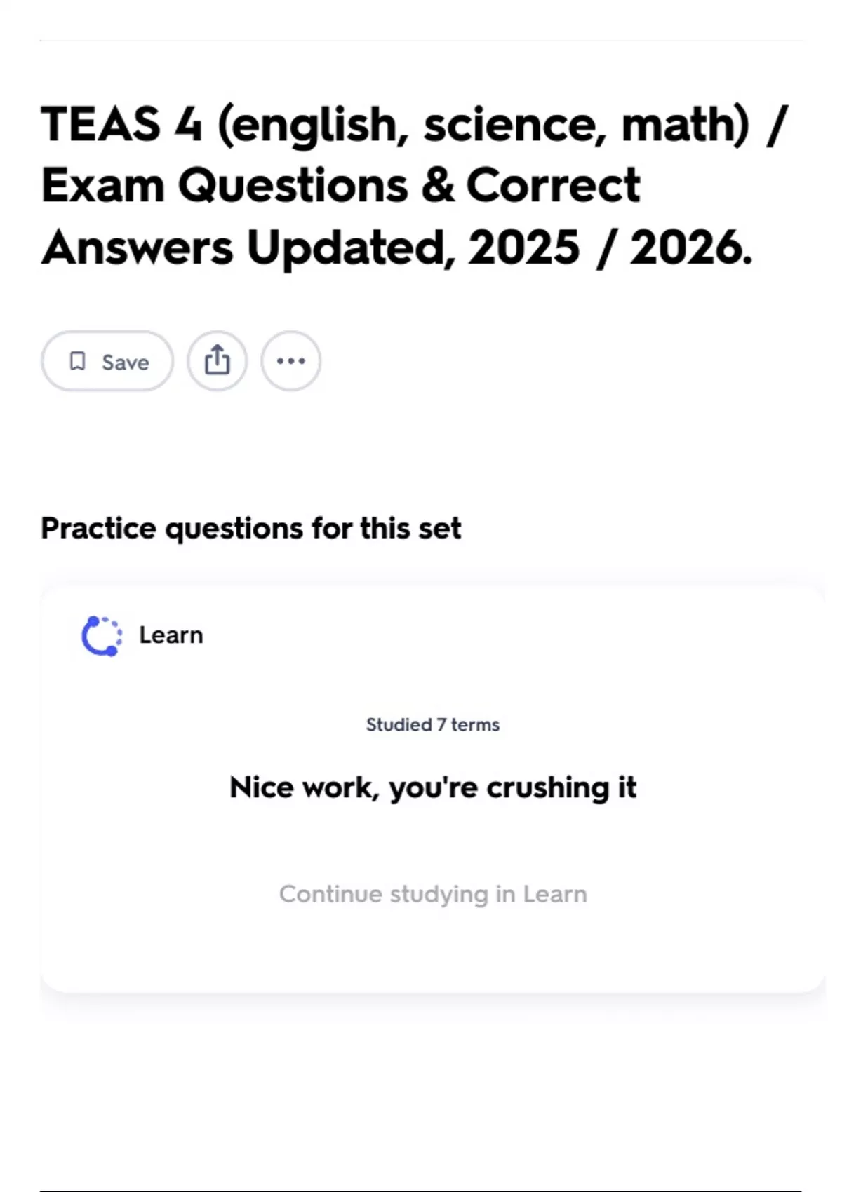 Continue studying in Learn