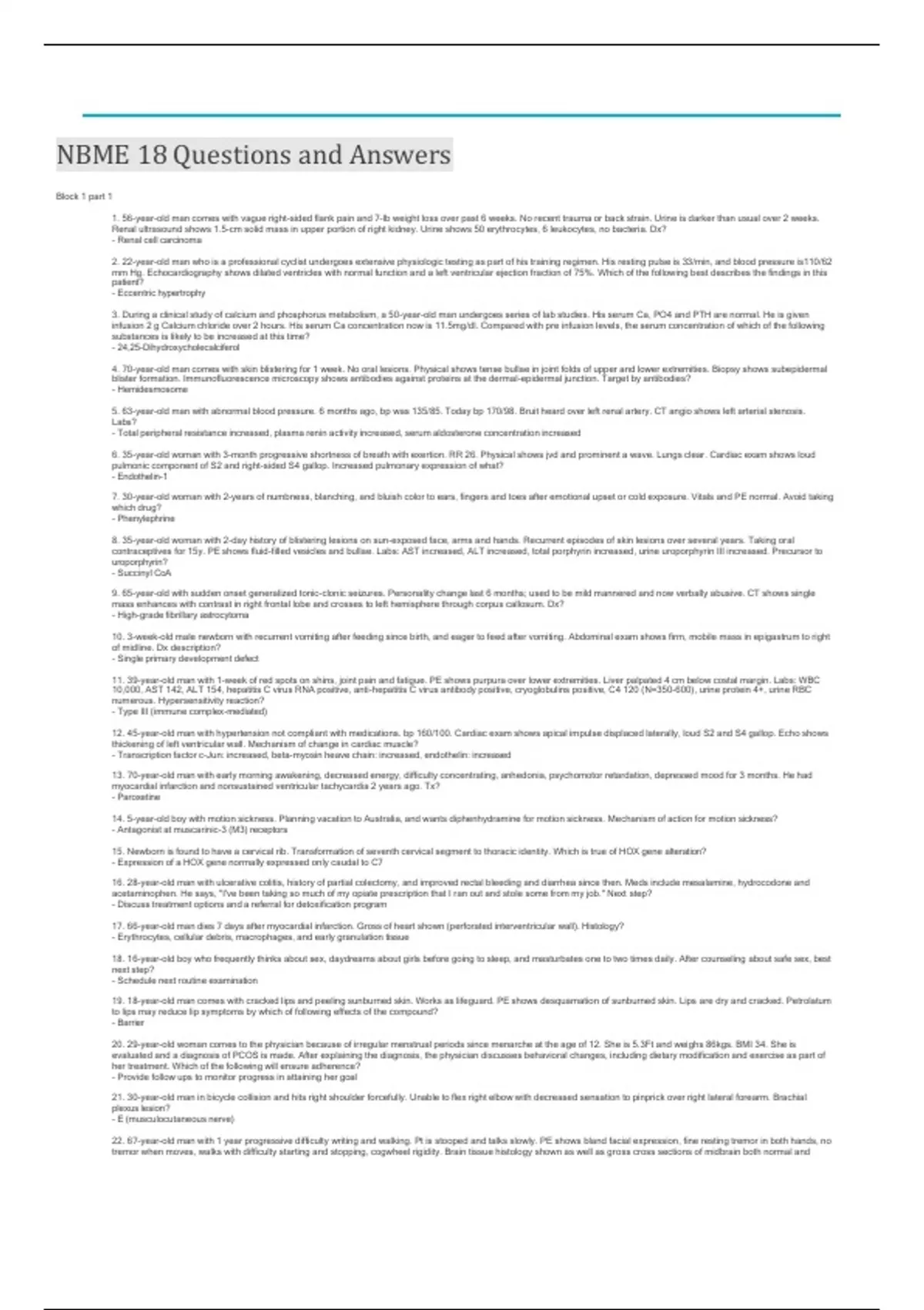 1. 56-year-old man comes with vague right-sided flank pain and 7-lb weight loss over past 6 weeks. No recent trauma or back strain. Urine is darker than usual over 2 weeks.