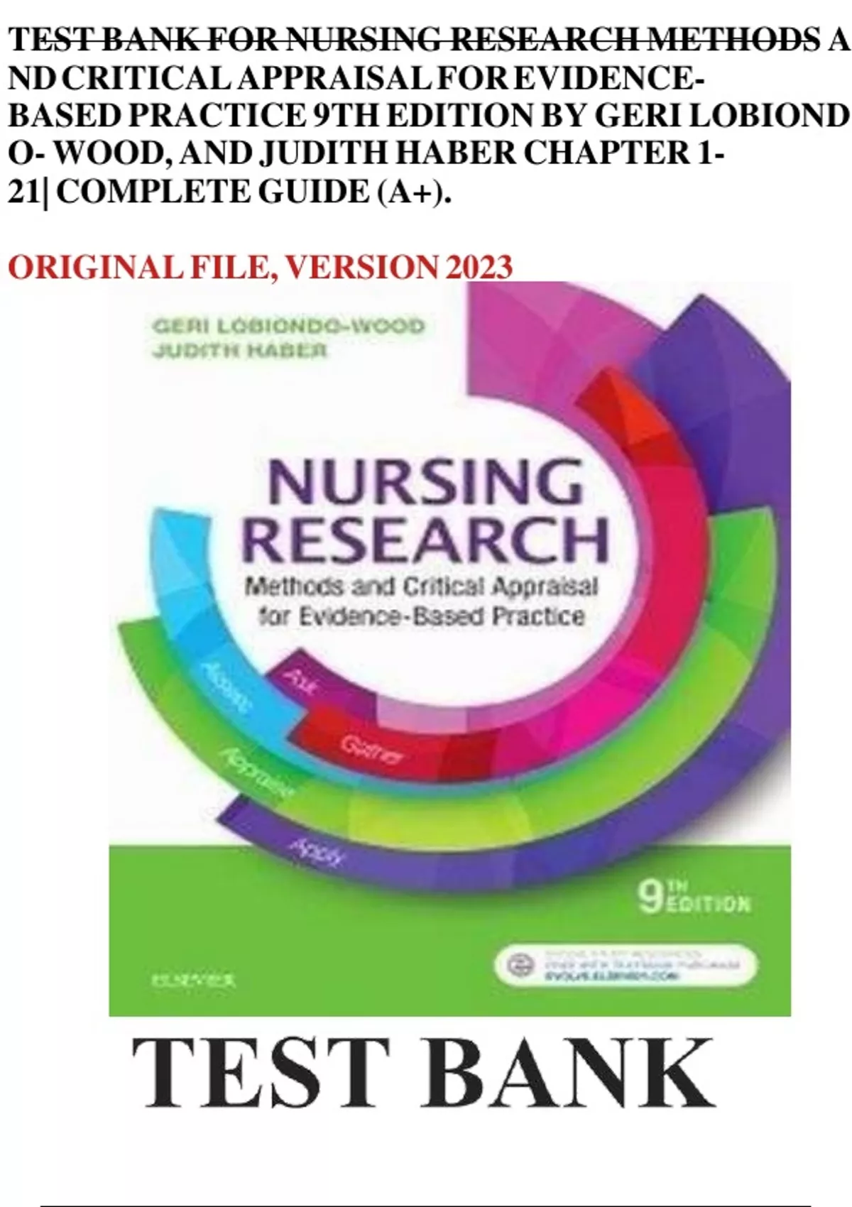 TEST BANK FOR NURSING RESEARCH METHODS AND CRITICAL APPRAISAL FOR EVIDENCE-BASED PRACTICE 9TH EDITION BY GERI LOBIONDO-WOOD, AND JUDITH HABER ISBN: 9780323431316 ISBN: 9780323447652