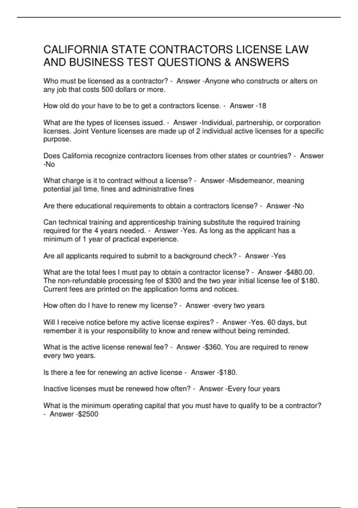 Are there educational requirements to obtain a contractors license? - Answer -No