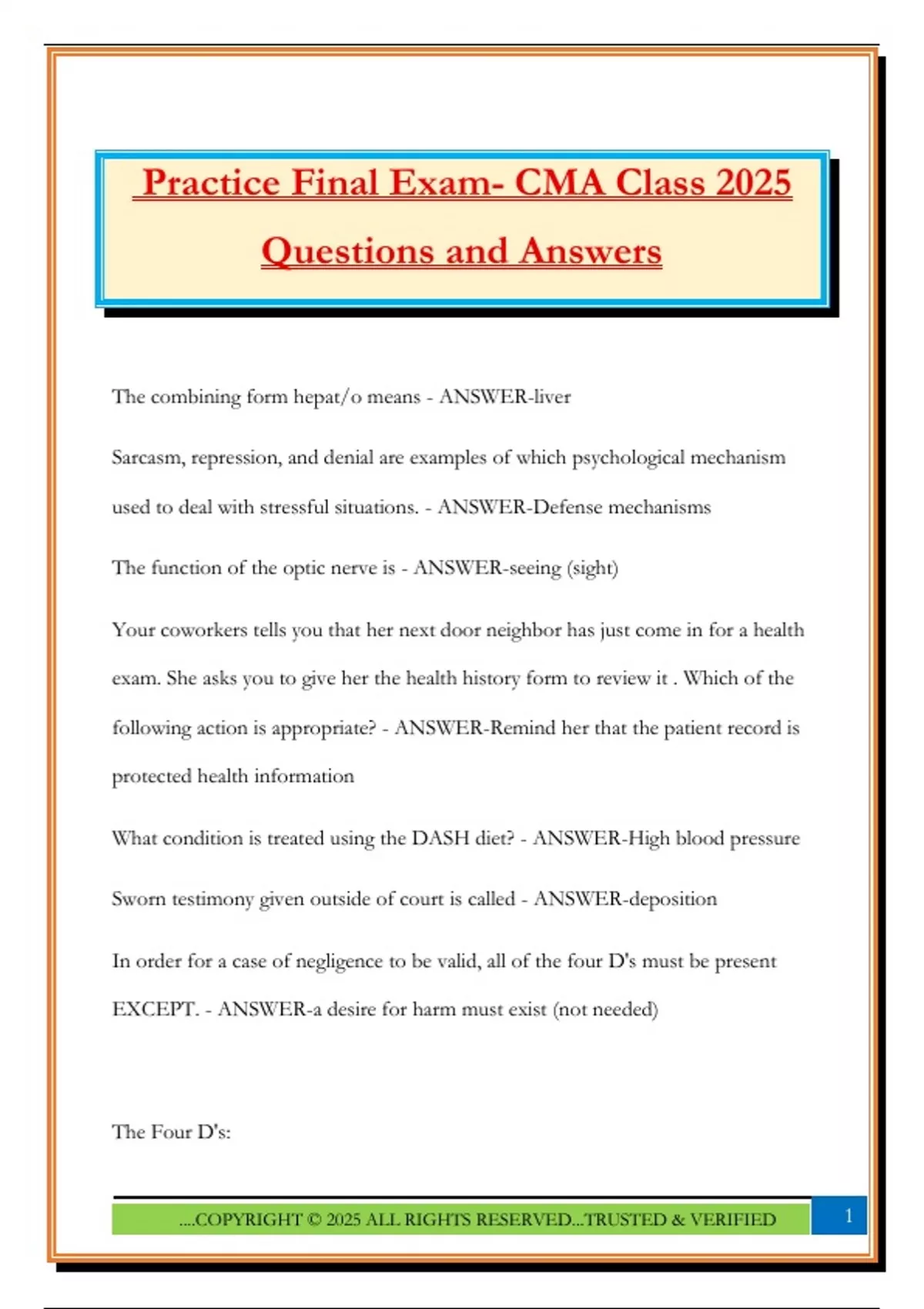 Practice Final Exam- CMA Class 2025