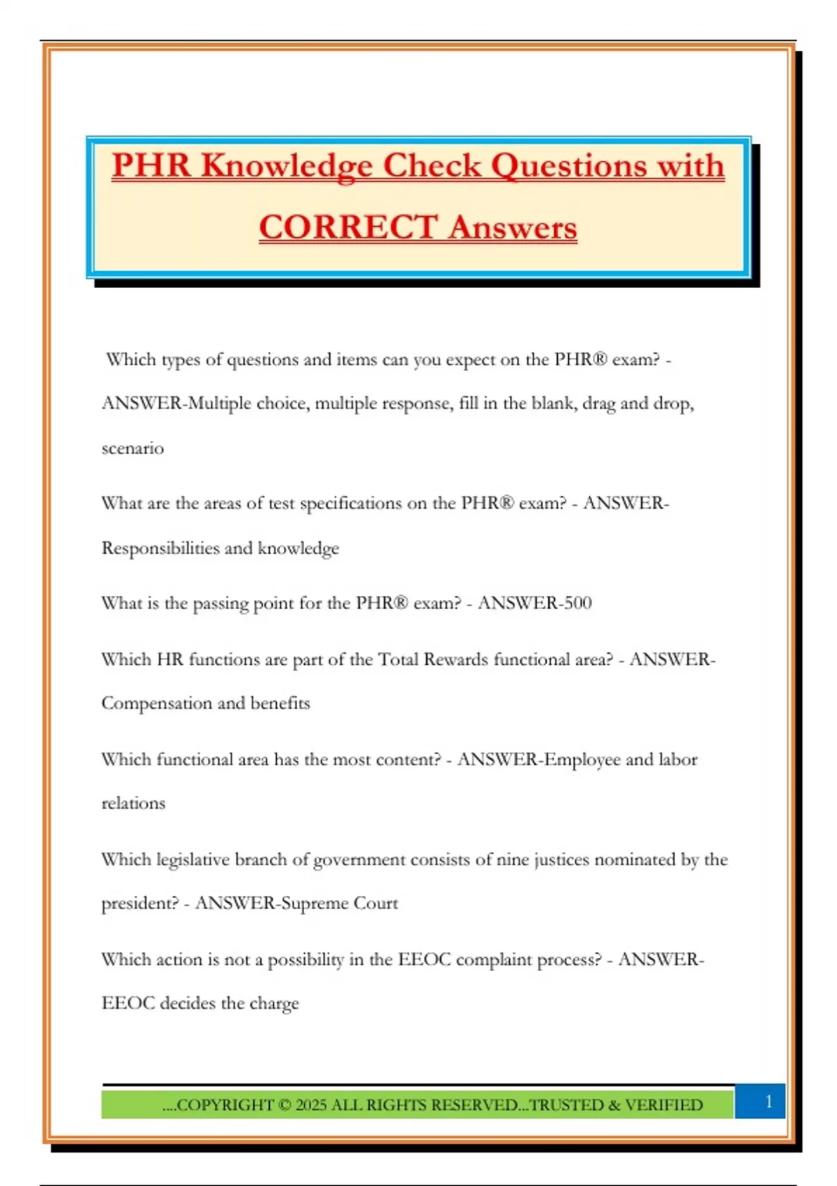 PHR Knowledge Check Questions with