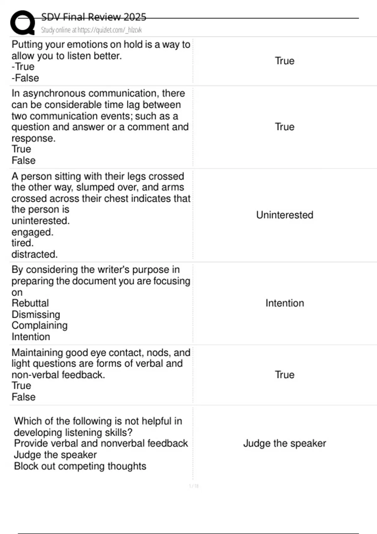 question and answer or a comment and True