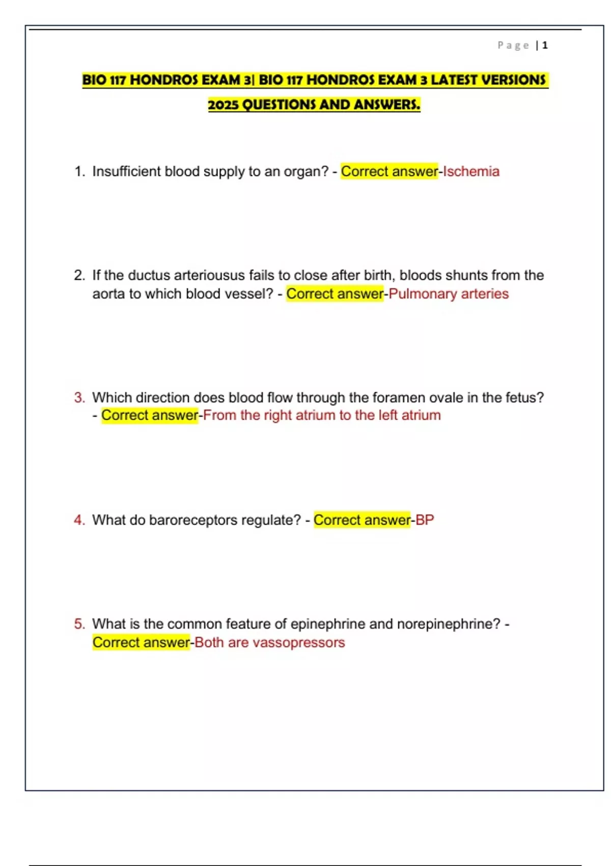 BIO 117 HONDROS EXAM 3| BIO 117 HONDROS EXAM 3 LATEST VERSIONS